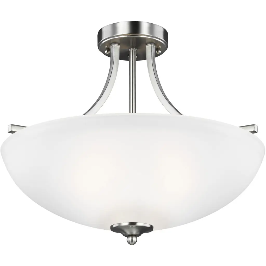 The Geary three light indoor semi-flush convertible in midnight black supplies ample lighting for your daily needs, while adding a layer of today's style to your home's d?cor. Adaptability takes center stage with the Geary Collection. This series of traditional up-light pendants, semi-flush and flush-mount fixtures feature decoratively bowed arms and constructed of rectangular steel tubing. Geary is a true cross-collection piece, offered in four beautiful finishes Blacksmith, Brushed Nickel, Burnt Sienna and Heirloom Bronze. The Geary has a universal appeal matching 24 different interior collections. Offering subtle style with practical design, Geary is at home in almost any room. The fixtures have a fluid movement with a traditional look to complement a wide range of decor.