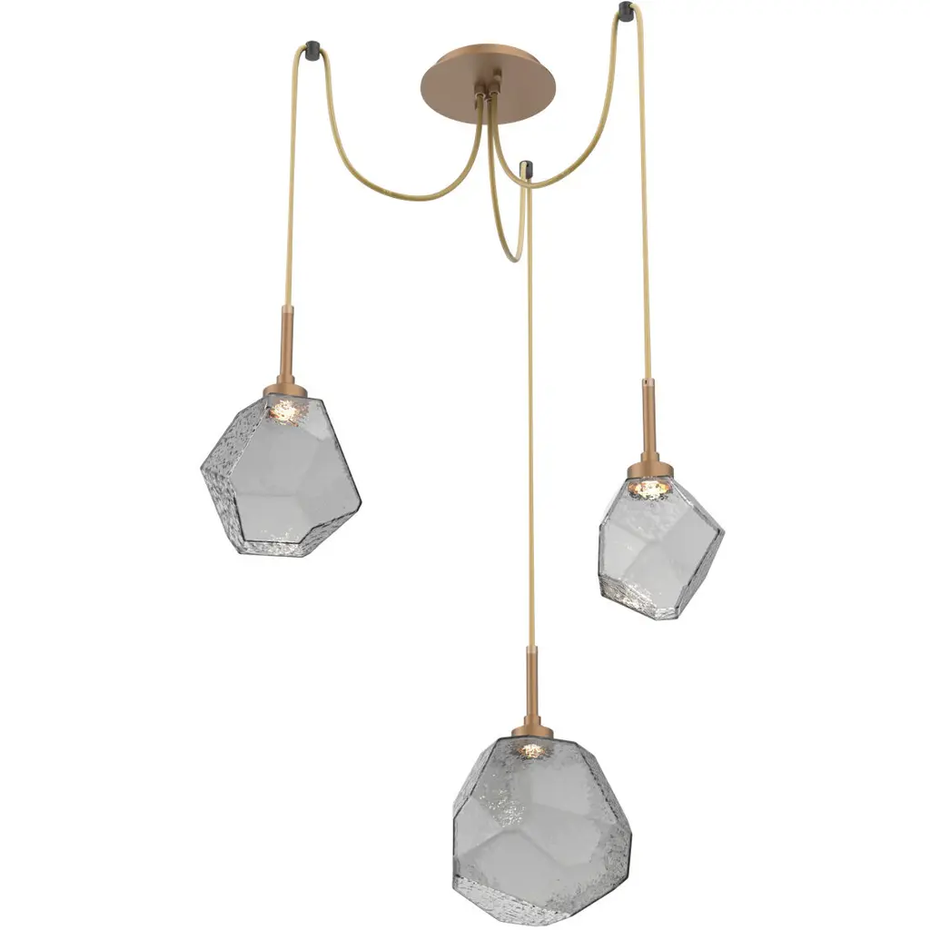 Gem Led 17 Inch Burnished Bronze Swag Multi-Pendant Ceiling Light In Smoke, 2700k Led