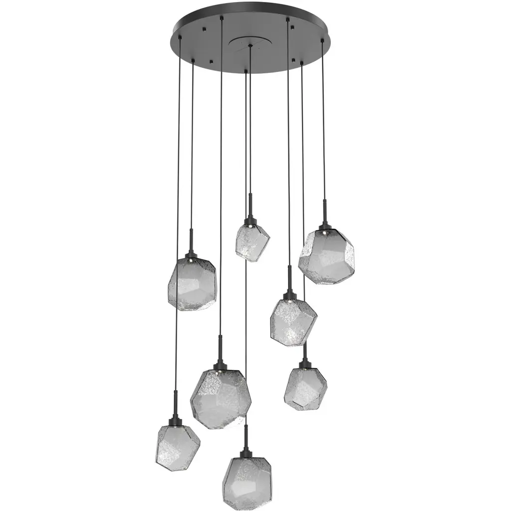 Jewelry for the home: this versatile chandelier style featuring our iconic Gem crystal glass enables customization of the placement and height of each pendant. Integrated LED illuminates the Gem glass without the visual distraction of a filament bulb. Choose from several glass colors and finishes.