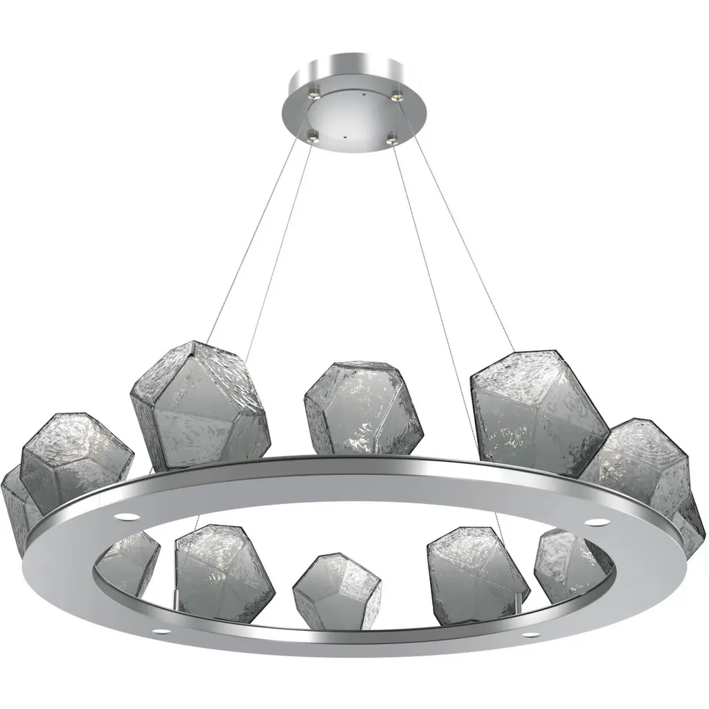 Gem Linear Suspension-0B-Matte Black-Blown Glass Gem - Smoke-Stainless Steel Cable-LED