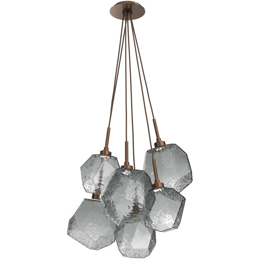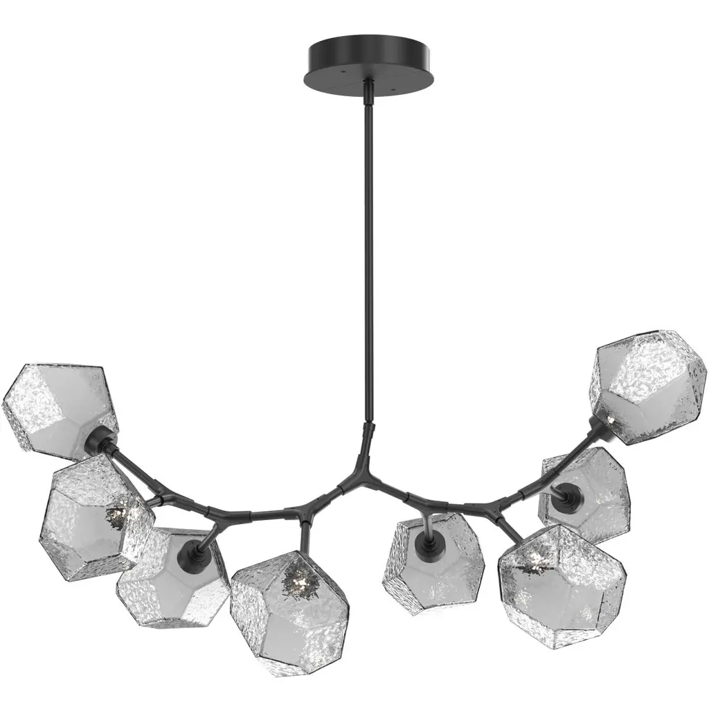 Gem Modern Branch - 8 pc-Flat Bronze-Blown Glass Gem - Smoke-Threaded Rod Suspension-LED