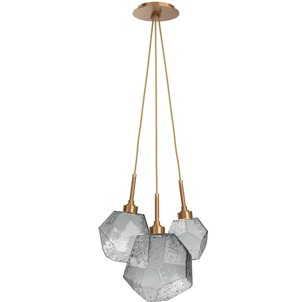 Gem Linear Multi-Port-07-Novel Brass-Blown Glass Gem - Smoke-Brass Cloth Braided Cord-LED