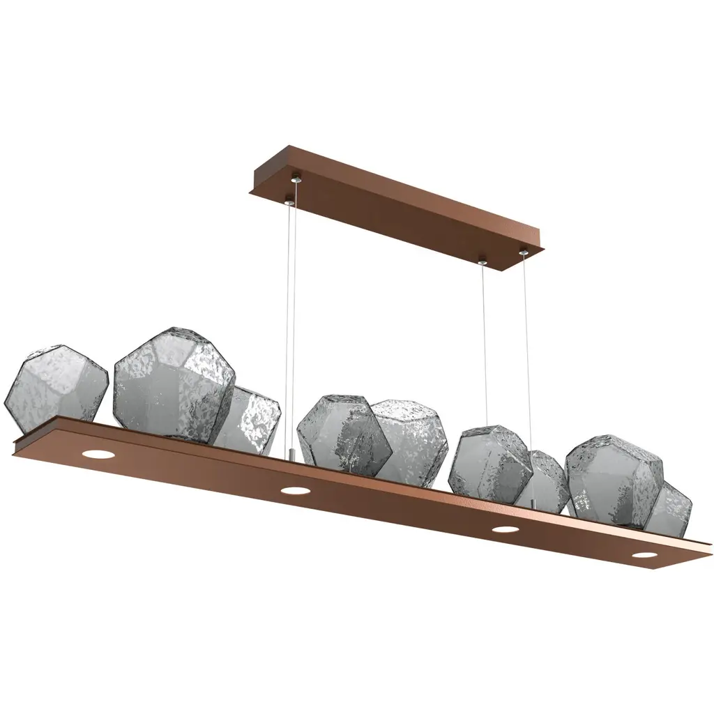 Gem Linear Suspension-0C-Classic Silver-Blown Glass Gem - Smoke-Stainless Steel Cable-LED