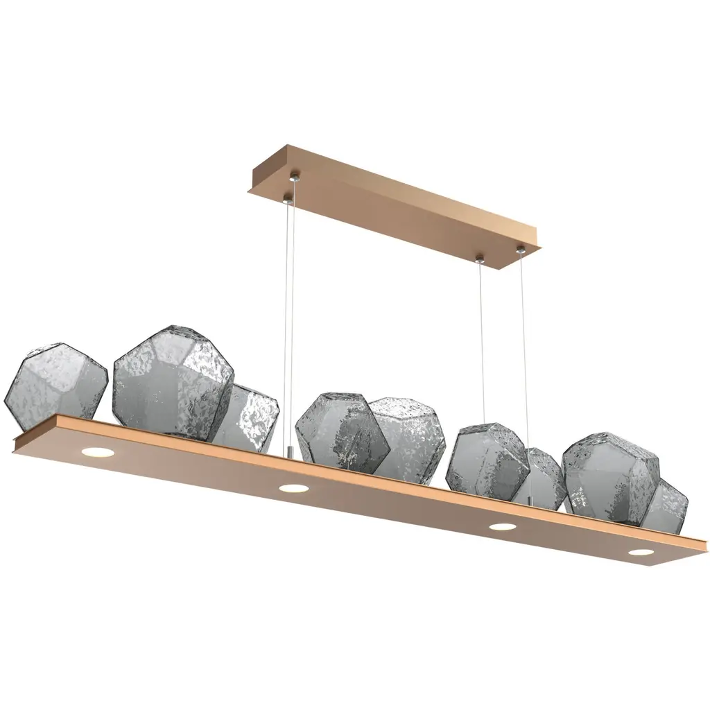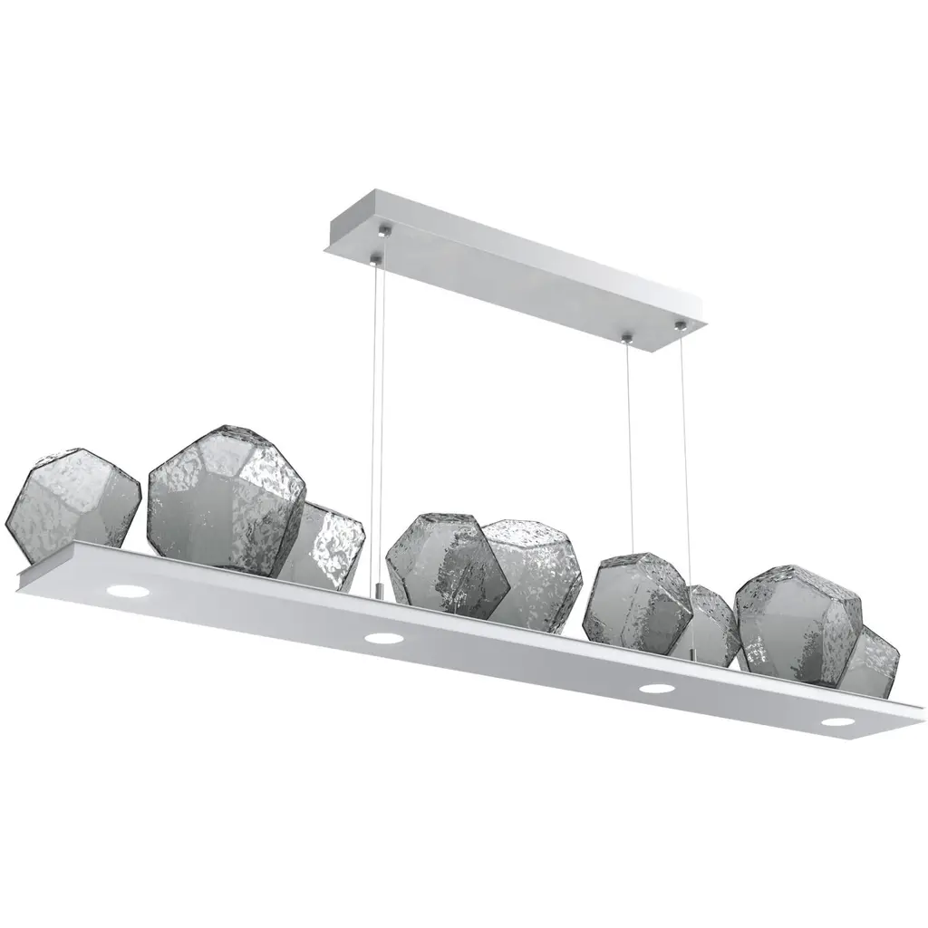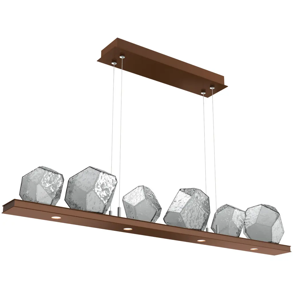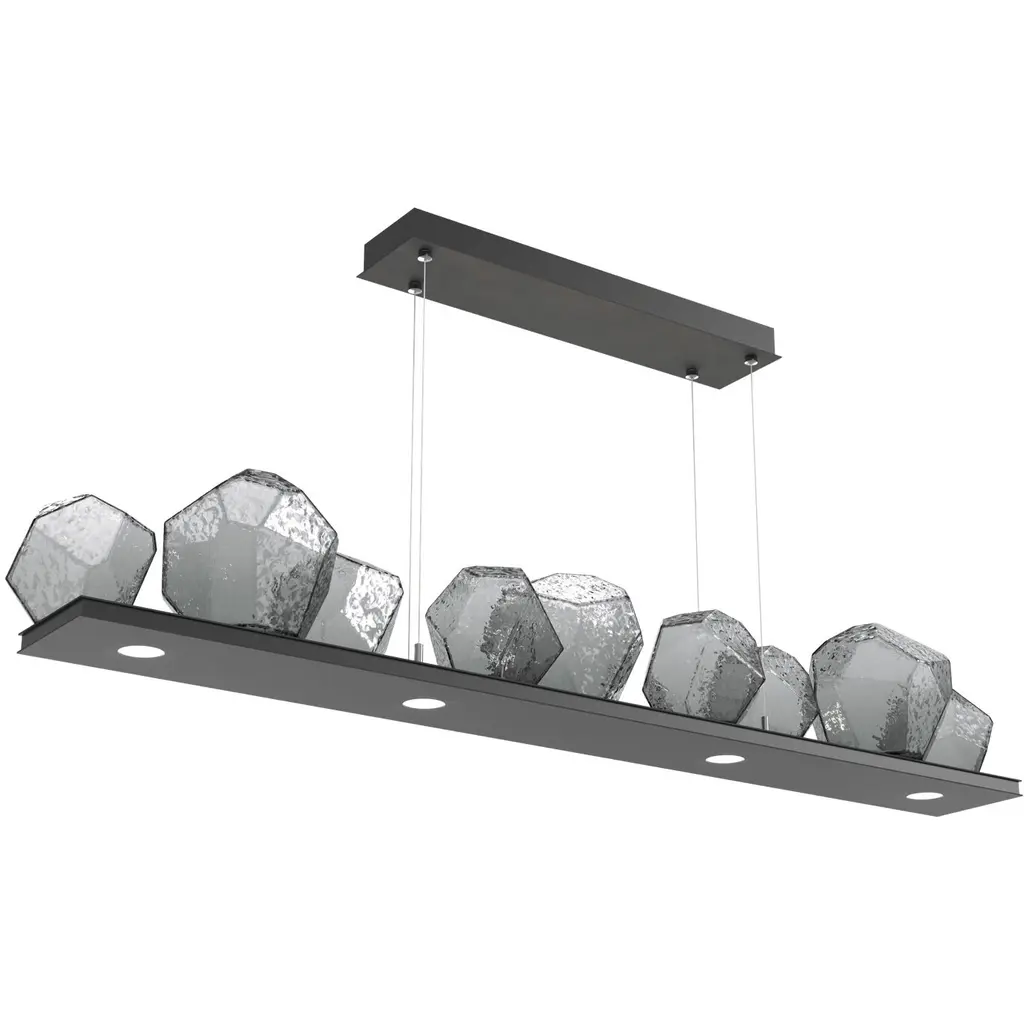 Gem Linear Suspension-0C-Graphite-Blown Glass Gem - Smoke-Stainless Steel Cable-LED