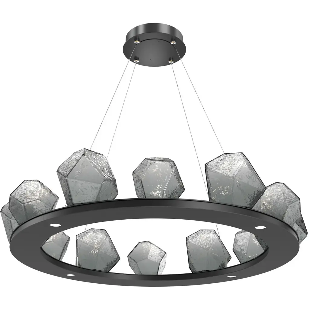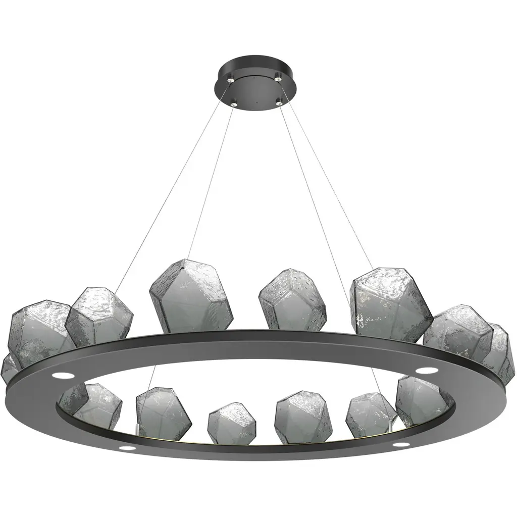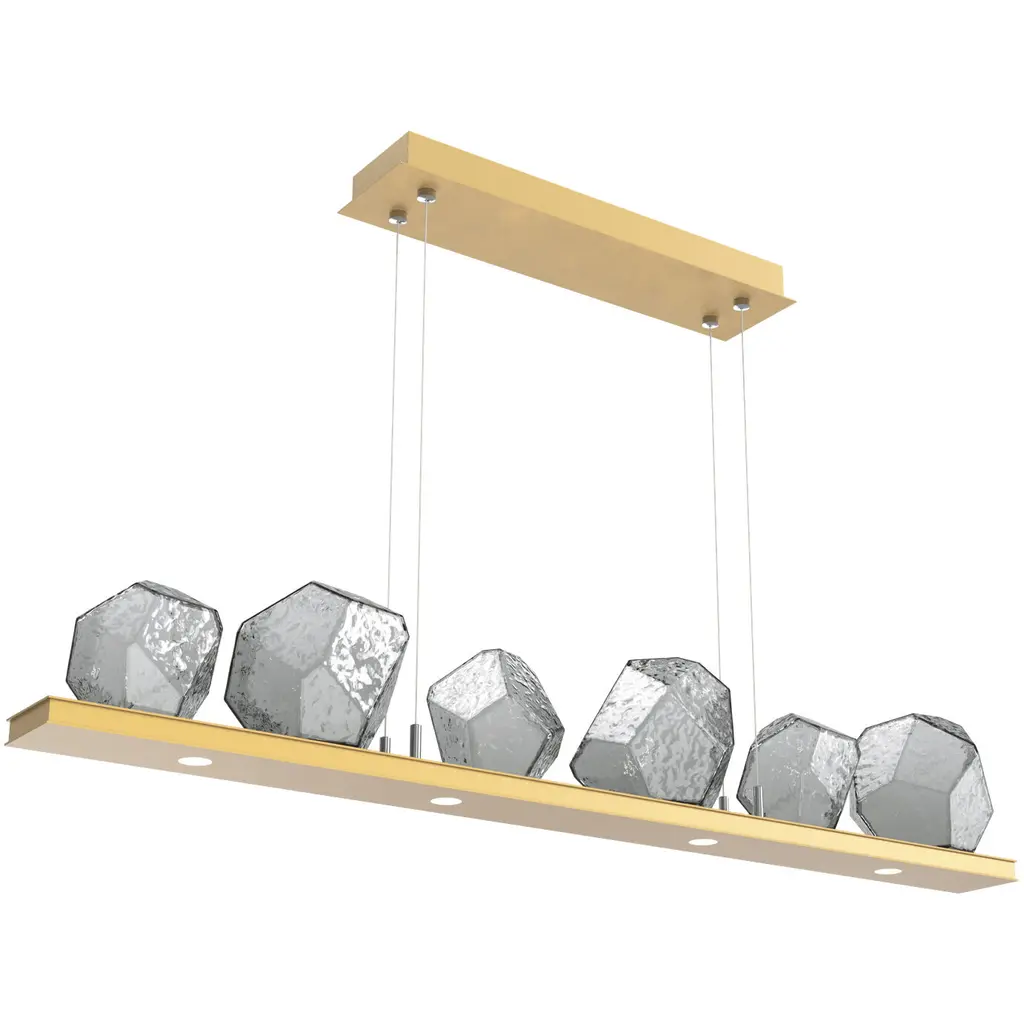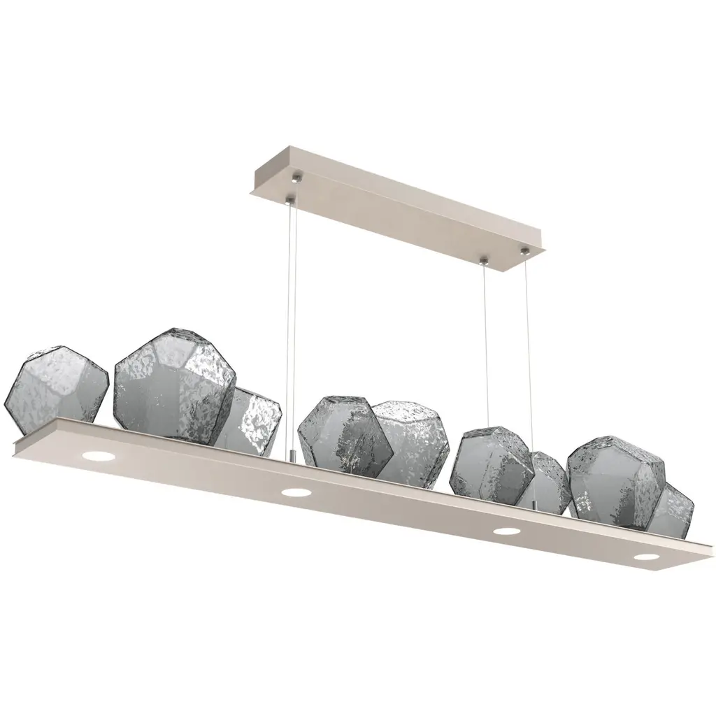 Gem Linear Suspension-0C-Graphite-Blown Glass Gem - Smoke-Stainless Steel Cable-LED