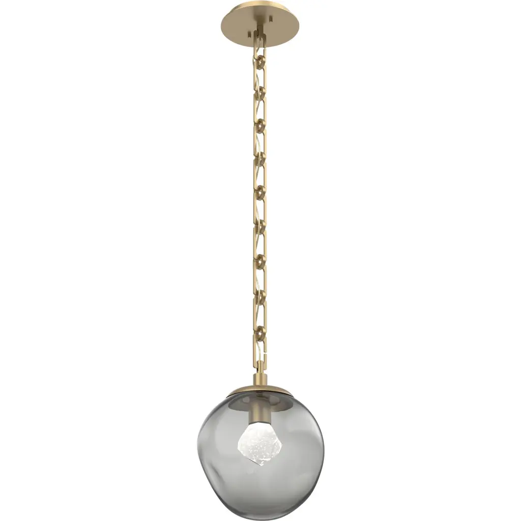 Gem Led 7.8 Inch Gilded Brass Pendant Ceiling Light In 3000k Led, Smoke, Rectangular Chain