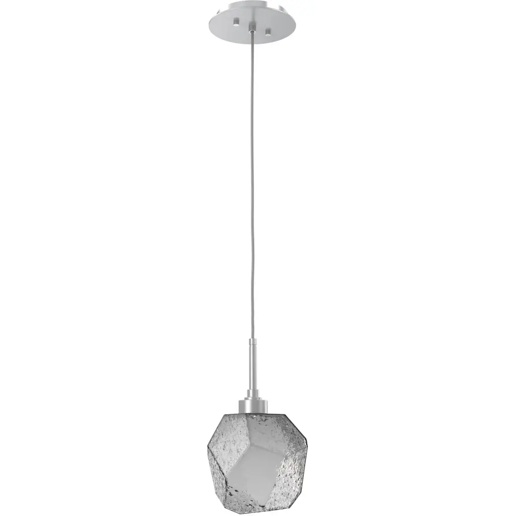 Gem Pendant-01-Graphite-Blown Glass Gem - Smoke-Silver Cloth Braided Cord-LED