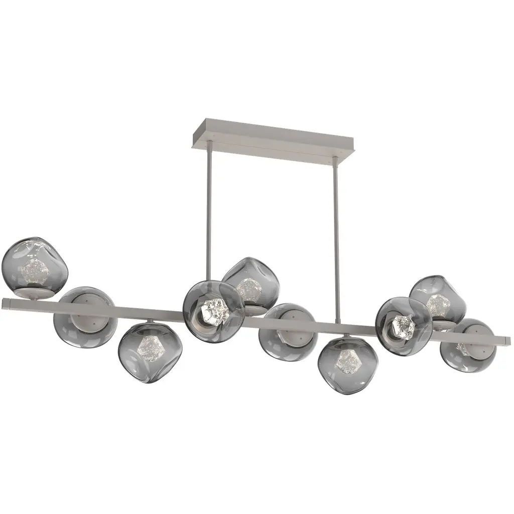 Gem 10pc Twisted Branch-Classic Silver-Smoke Blown Glass-Threaded Rod Suspension-LED 2700K