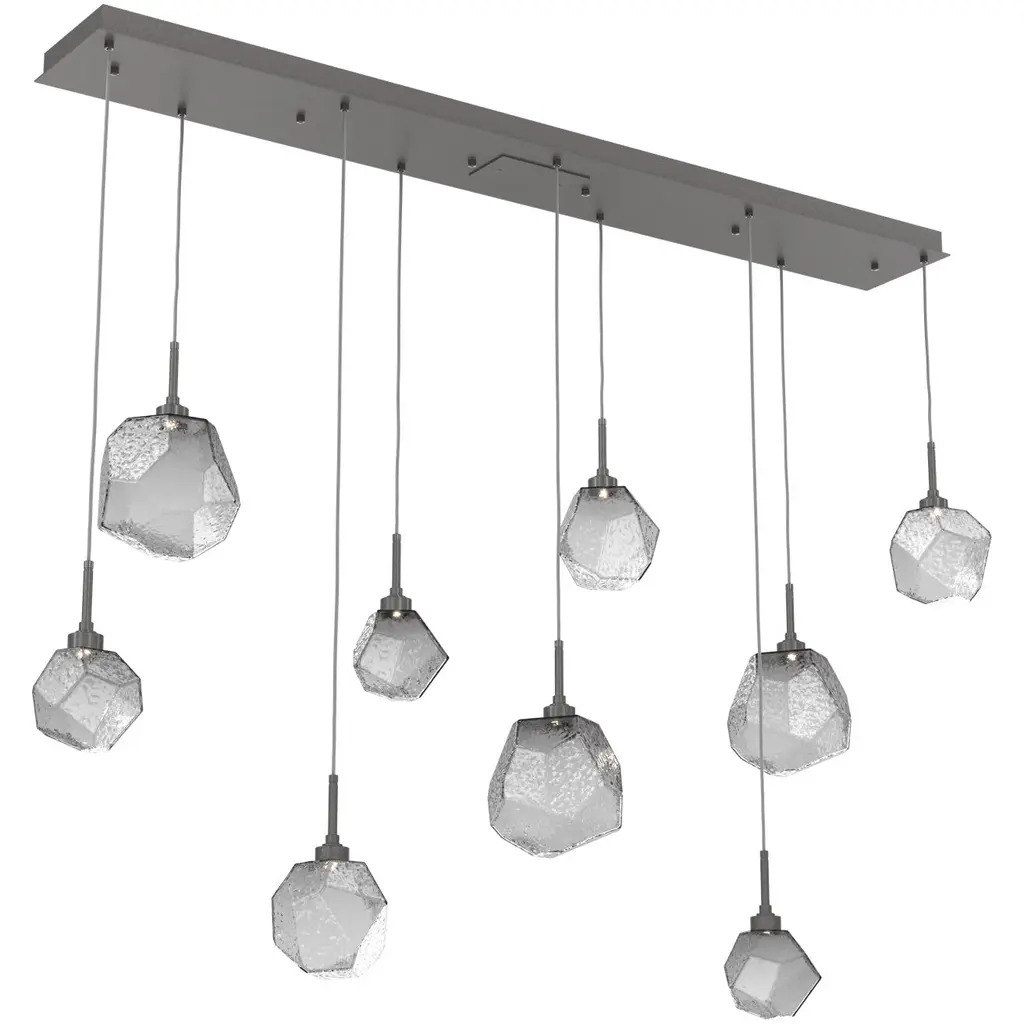 Gem Linear Multi-Port - 09-Classic Silver-Blown Glass Gem - Smoke-Silver Cloth Braided Cord-LED