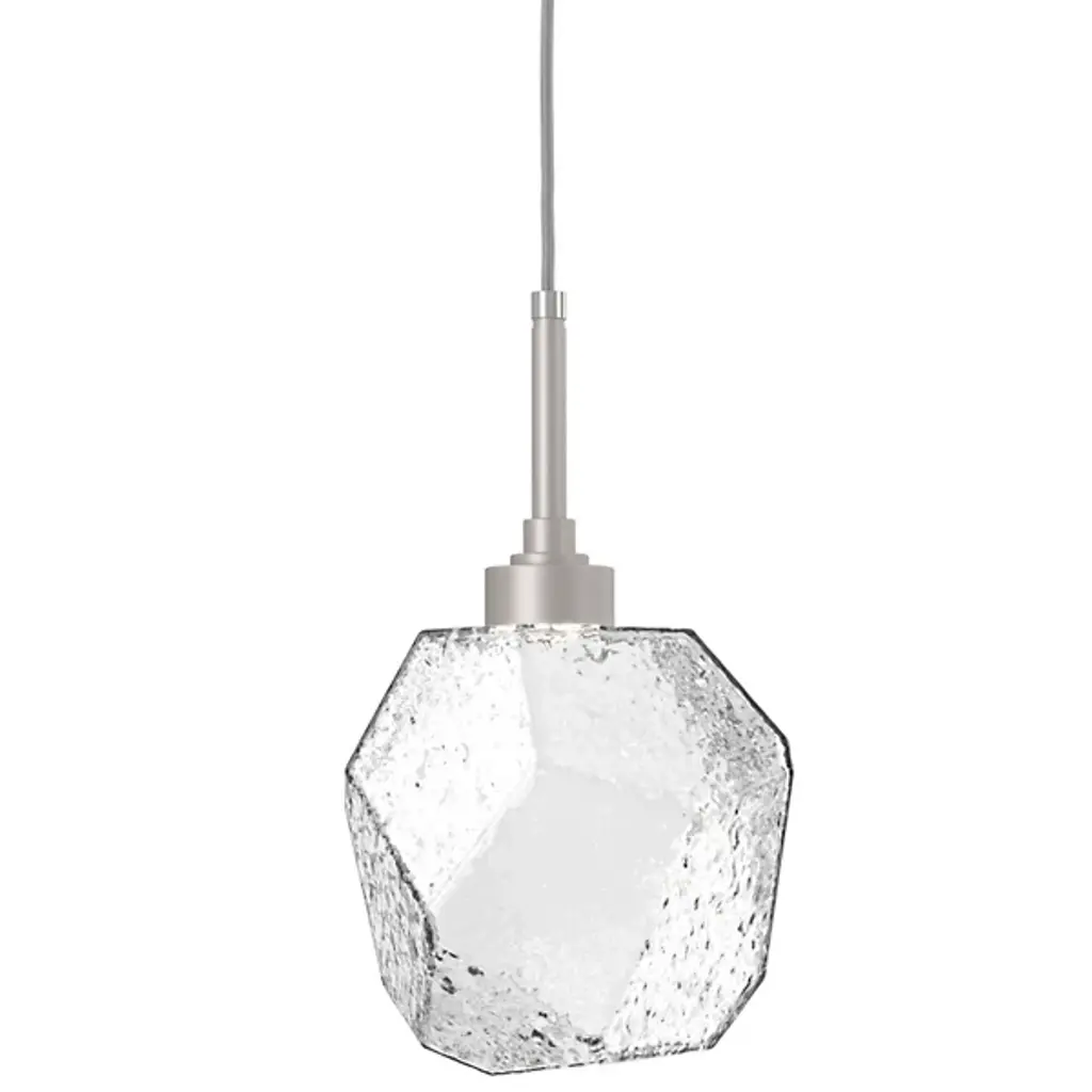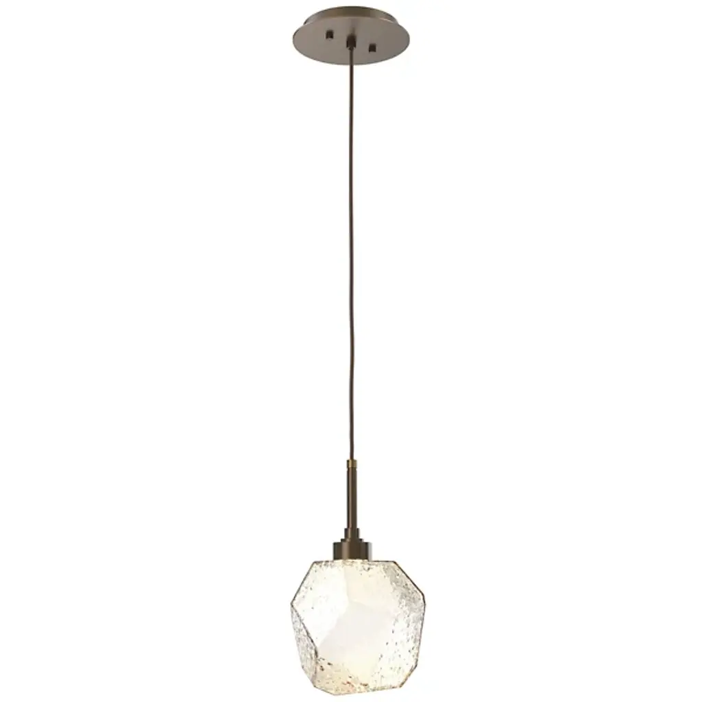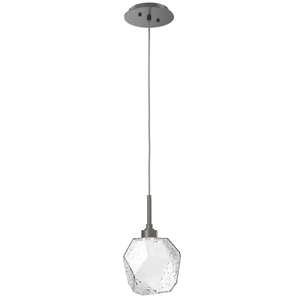 Bring a modern elegance to your living space with the Gem LED Pendant by Hammerton Studio. Handcrafted in America by expert artisans, this piece adopts the appearance of a hanging gemstone with its coarsely cut, blown glass shade. The shade is held in place by a finished metal socket holder. The integrated LED light provides a refractive ambient effect once lit.
