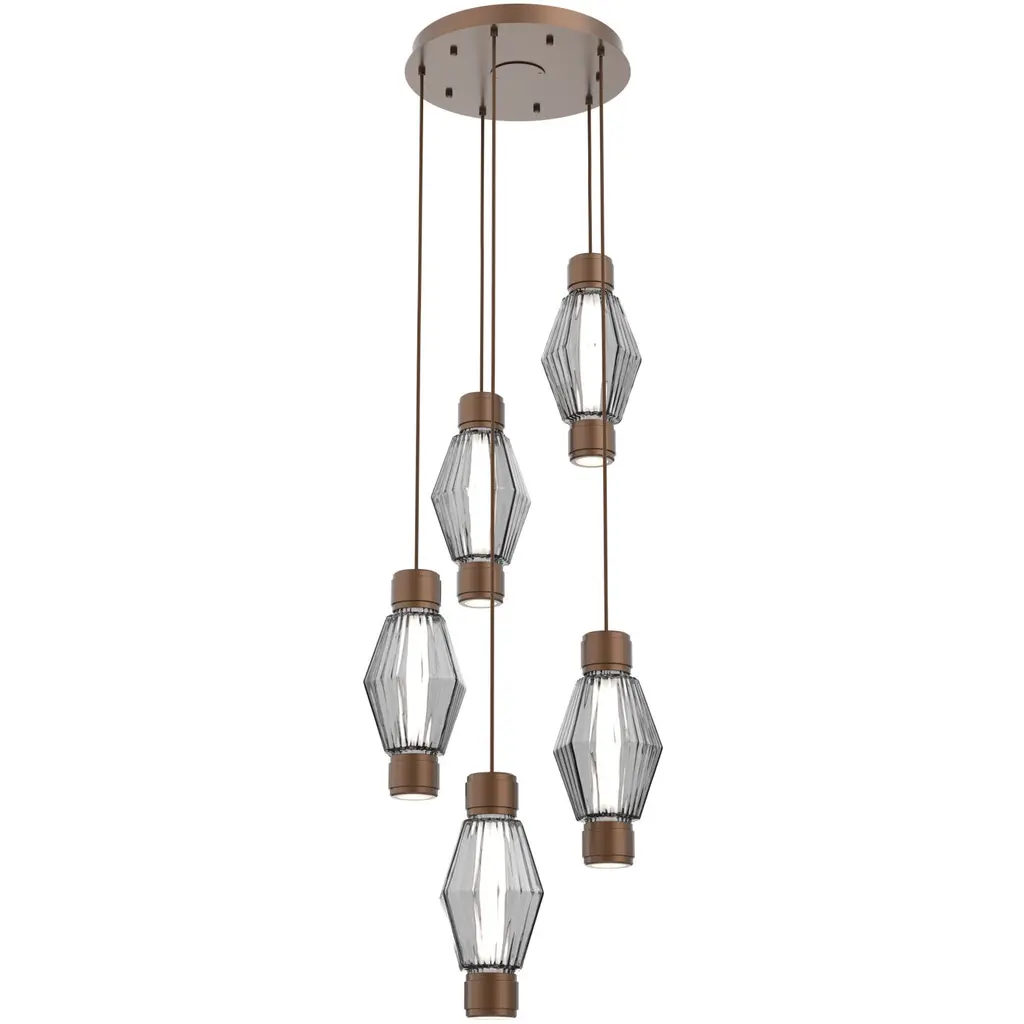 Gem Mandrel Led Burnished Bronze Multi Pendant Chandelier Ceiling Light In 3000k Led, Smoke Blown Glass
