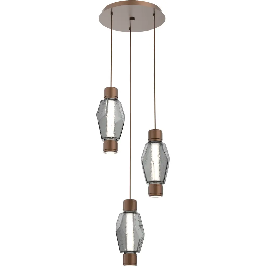 Gem Mandrel Led Burnished Bronze Multi Pendant Chandelier Ceiling Light In 3000k Led, Smoke Blown Glass