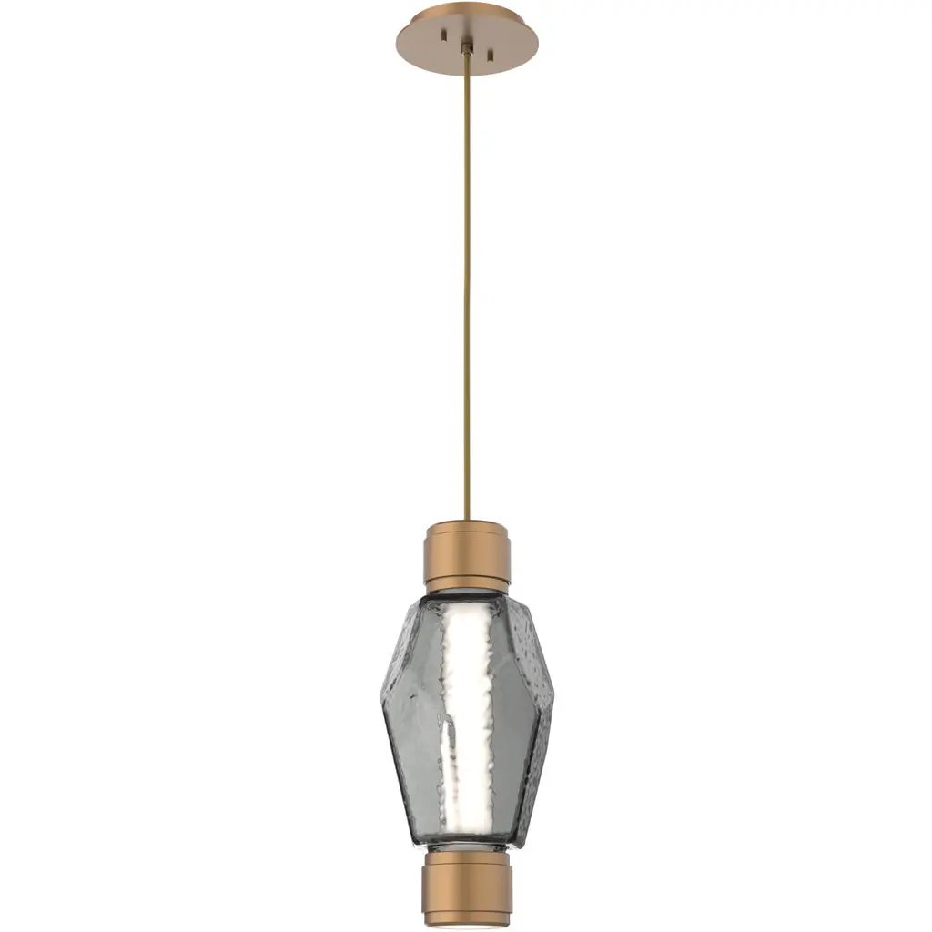 Gem Mandrel Led Classic Silver Pendant Ceiling Light In 3000k Led, Smoke Blown Glass
