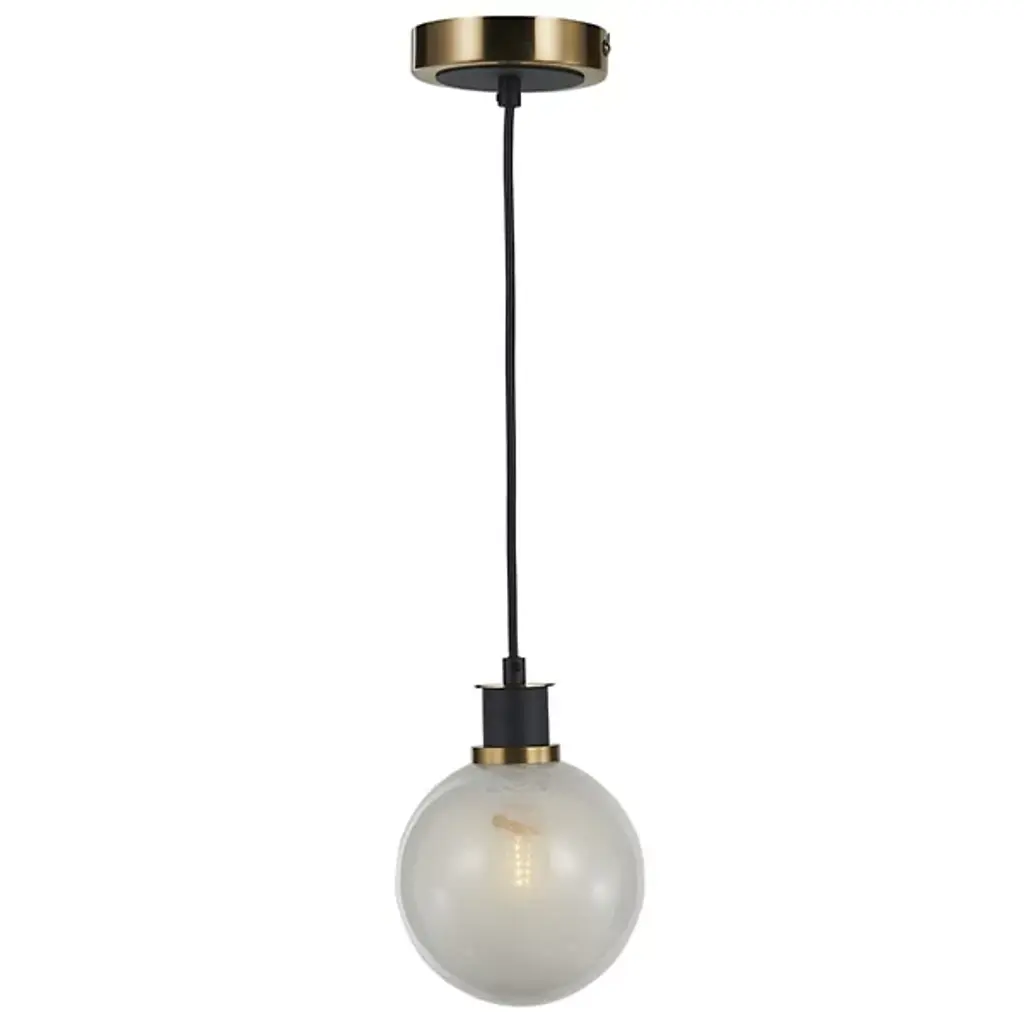 Discover the exquisite charm of the Gem Mini Pendant from Artcraft. It features acid-white glass, also known as etched glass, renowned for its rich, cloudy white appearance. Illuminated, this glassware emanates a warm hue, beautifully complementing its two-tone black and brushed brass framing. The showcased model is a single-light pendant offering adjustable height to suit your space perfectly. Elevate your decor with the captivating allure of the Gem Mini Pendant, blending elegance and functionality effortlessly