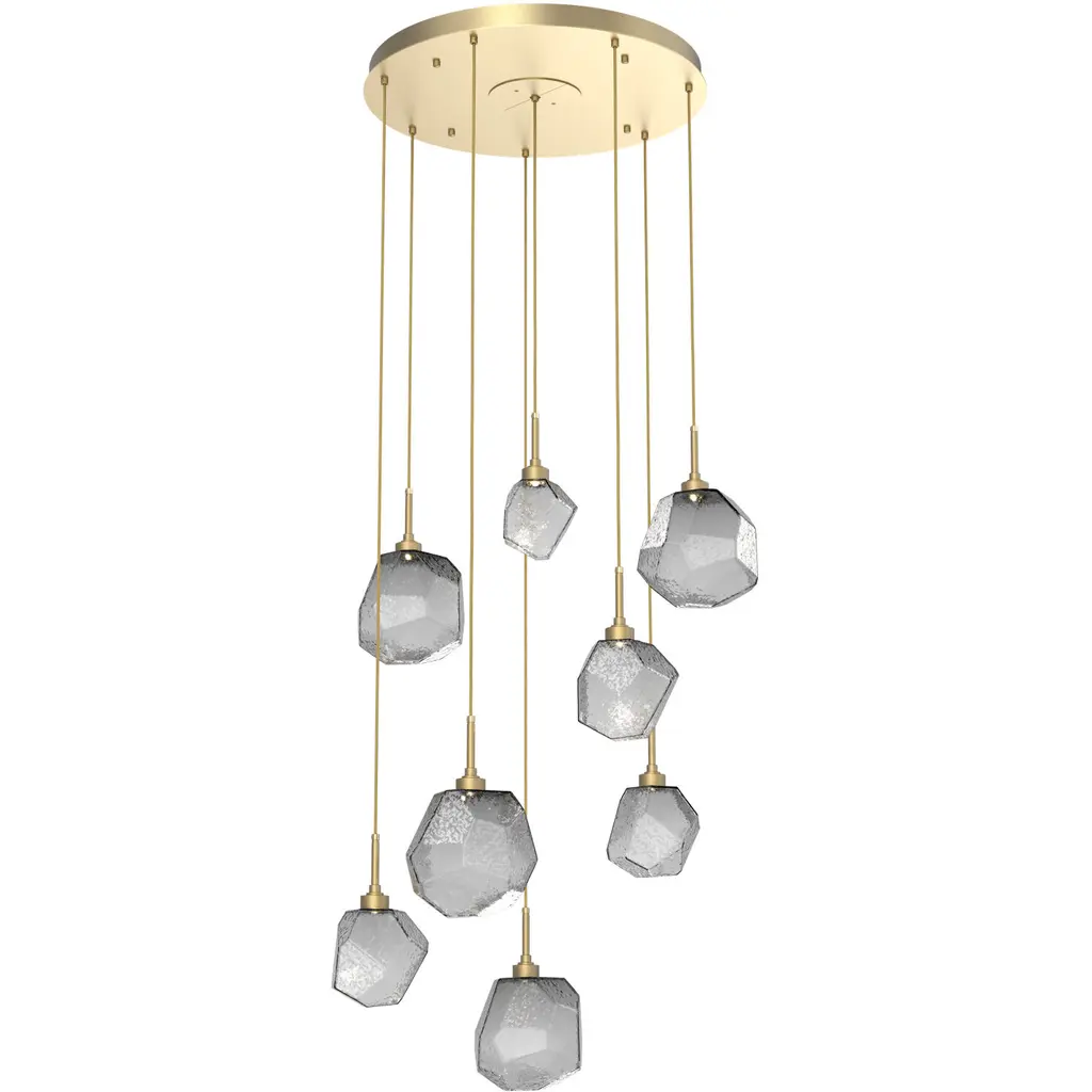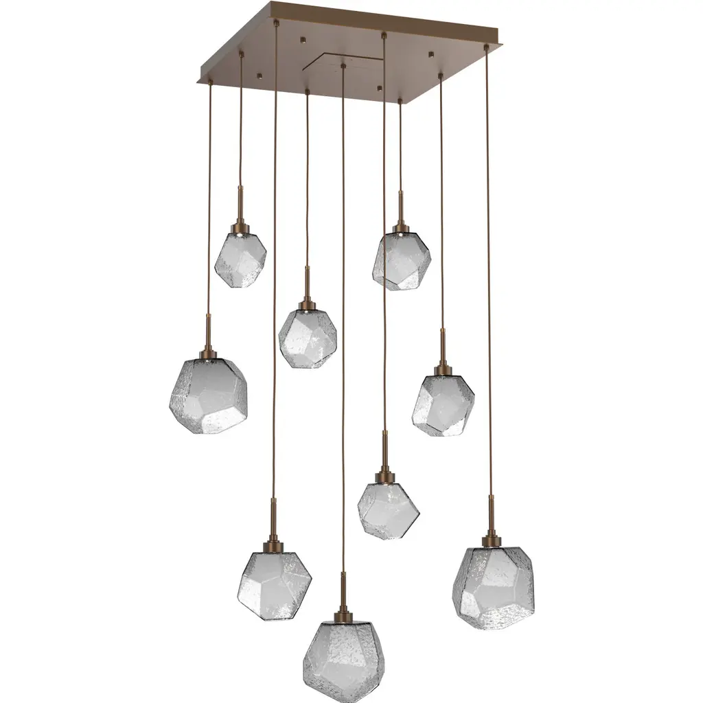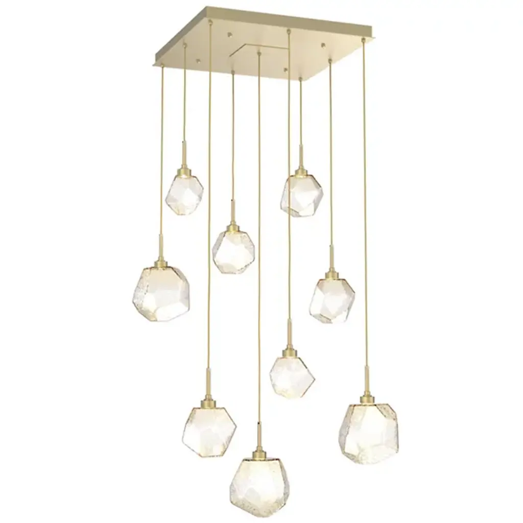 Adorn your home or business with the illustrious Gem Square LED Multi-Light Pendant by Hammerton Studio. Handcrafted in America by skilled artisans, this piece adopts the appearance of hanging gemstones with its coarsely cut, blown glass shades. Each shade is held in place by a finished metal socket holder which contains an integrated LED light that shines through the glass for a dynamic, ambient effect.