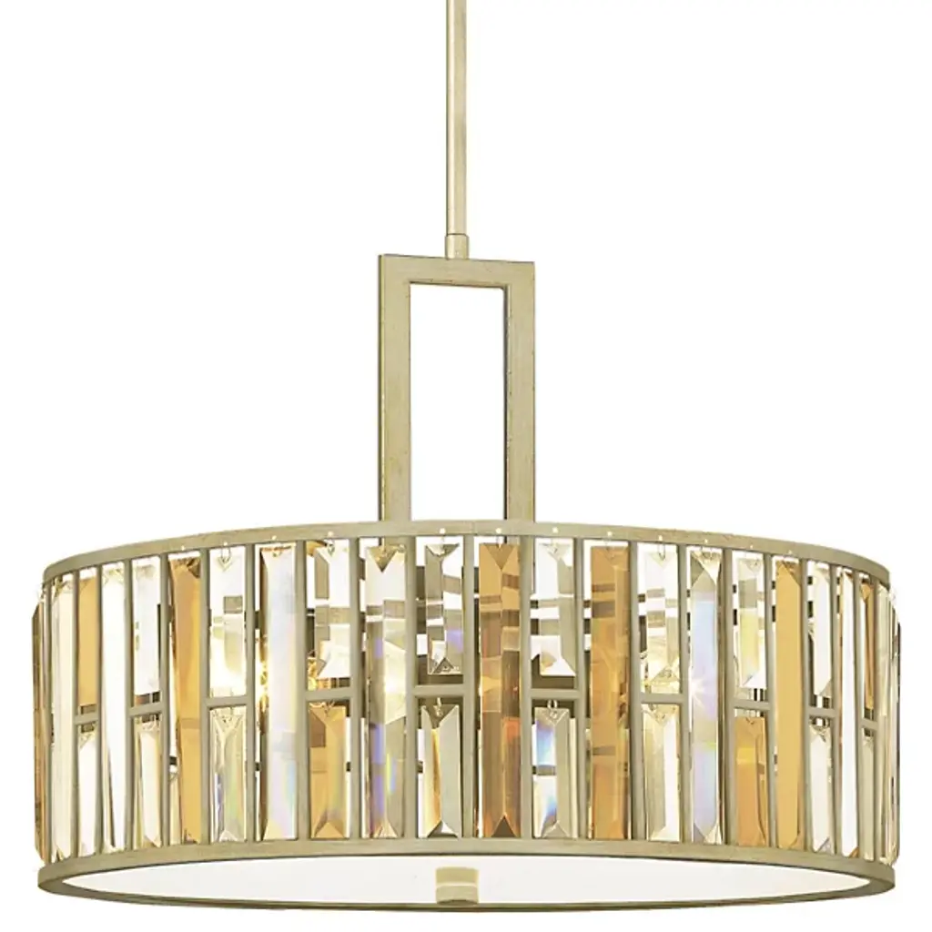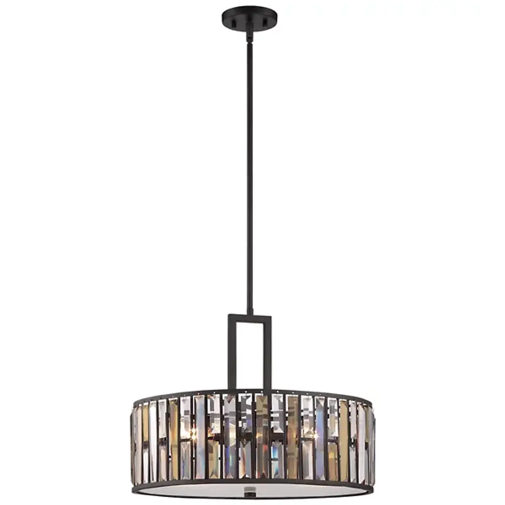 The Fredrick Ramond Gemma Drum Pendant is a transitional piece that puts a modern spin on a classic material. Dozens of crystal prisms are embedded into a steel frame, refracting and reflecting the illumination in a uniquely beautiful way. The rectangular accent above the crystals provides a modern accent, making this fixture fit for a variety of interior styles.