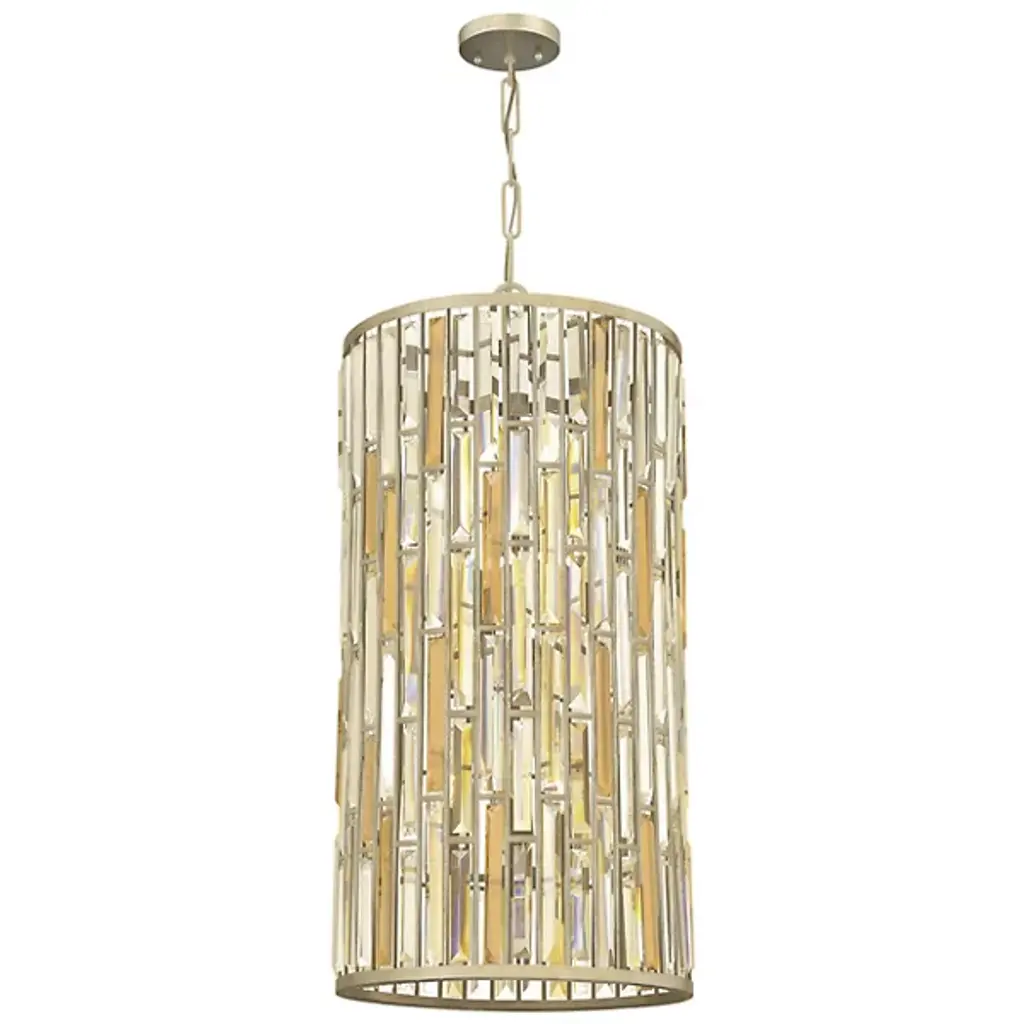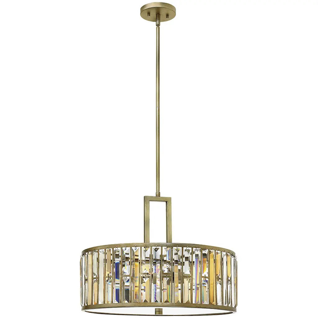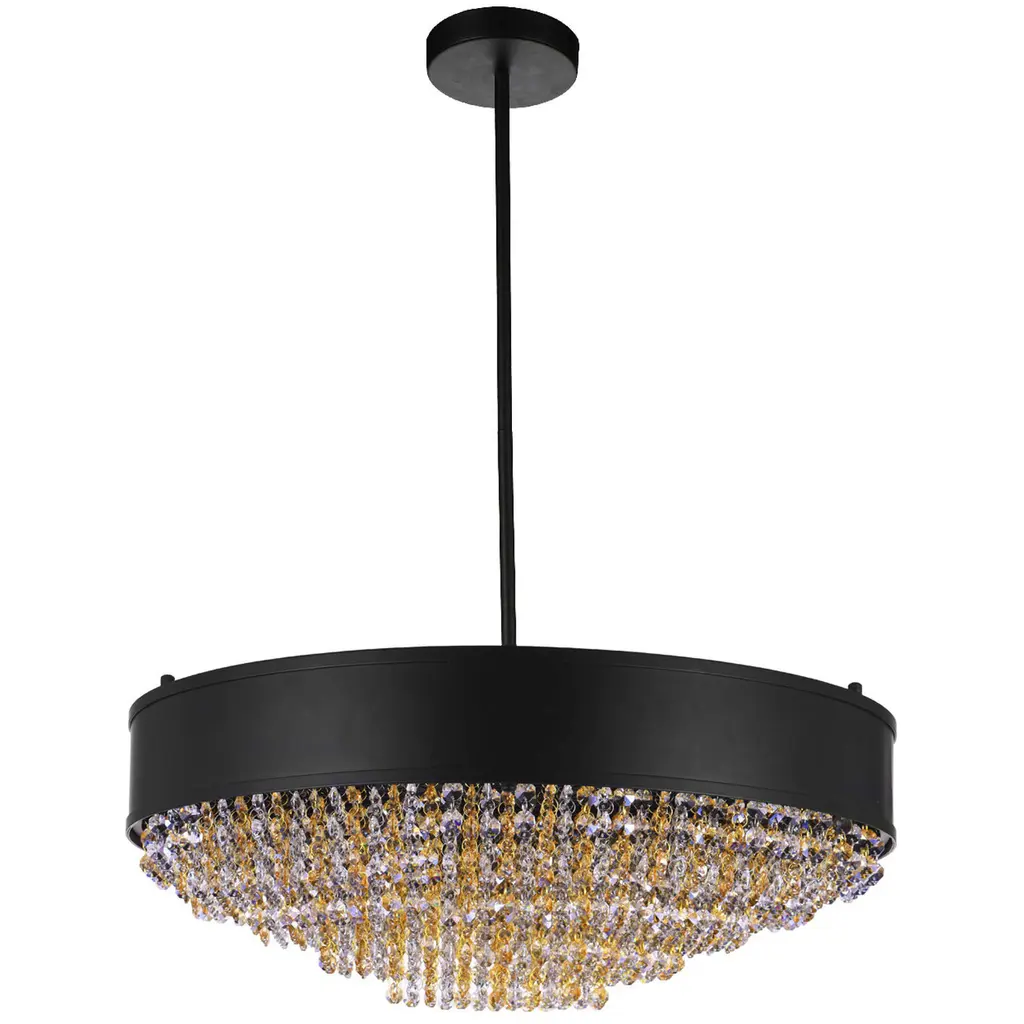 The Fredrick Ramond Gemma Pendant takes a traditional material and puts a modern spin on it. The round minimal frame features dozens of crystal prisms, each refracting and reflecting the illumination in a uniquely graceful manner. The focus is kept on the crystals, leaving the rest of the fixture simple and somewhat modern.