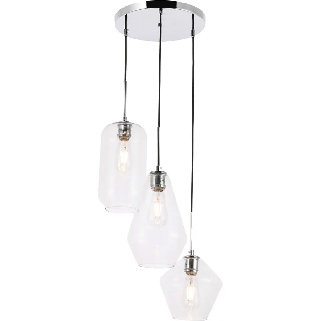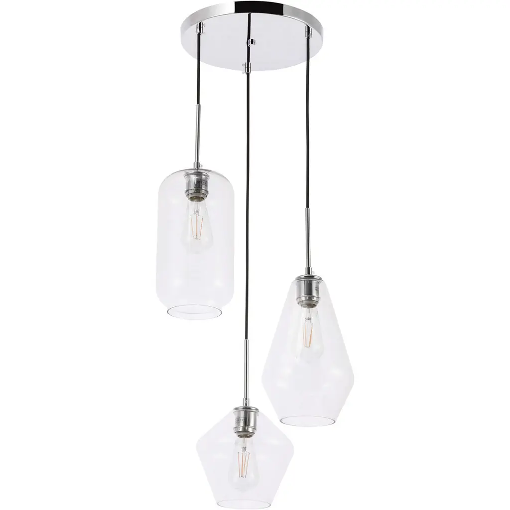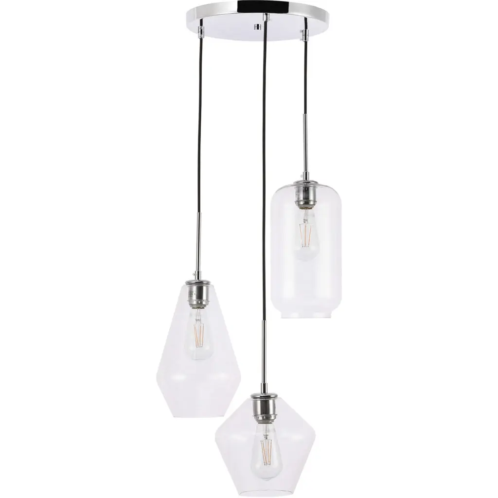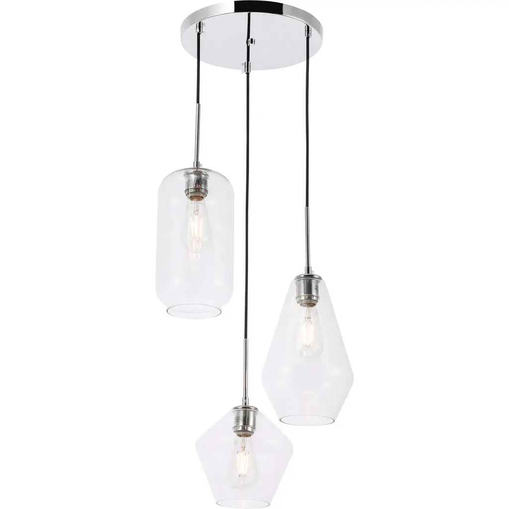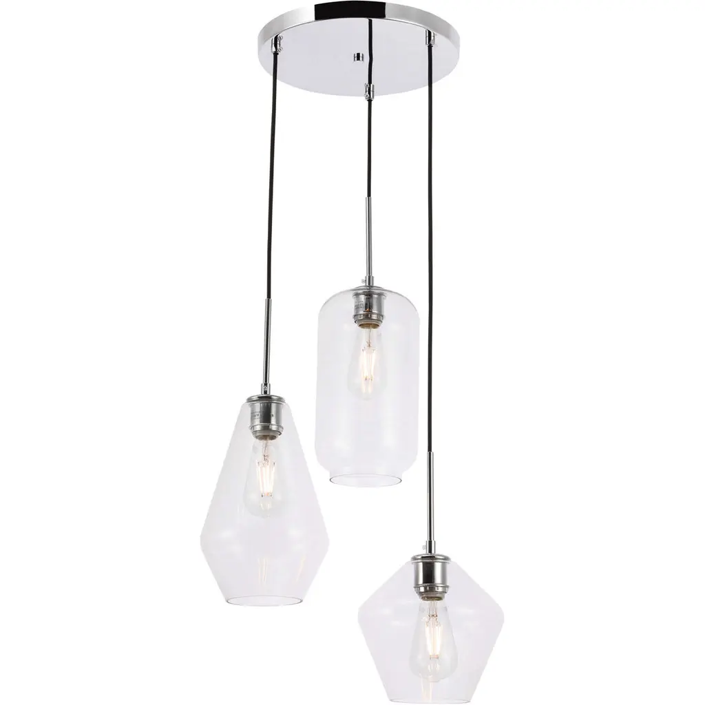 Gene 3 Light 17 Inch Chrome Pendant Ceiling Light