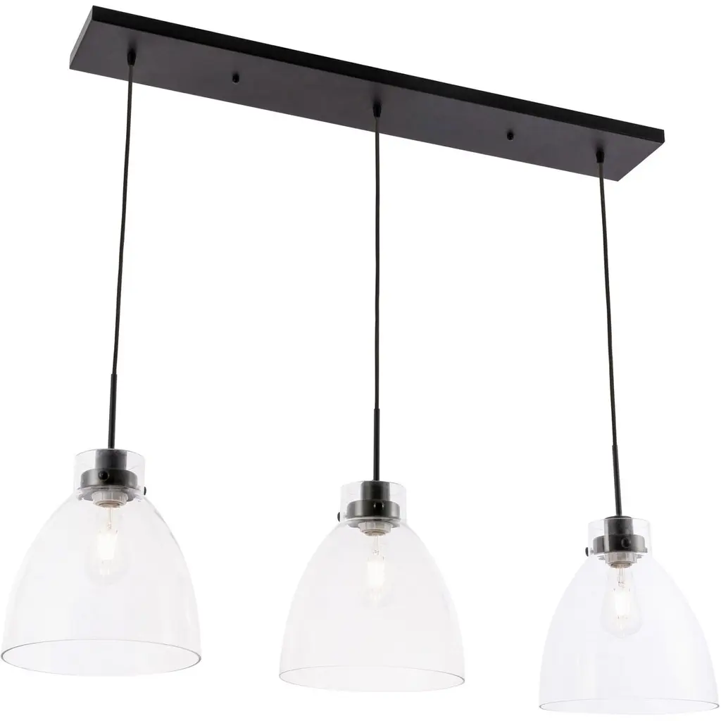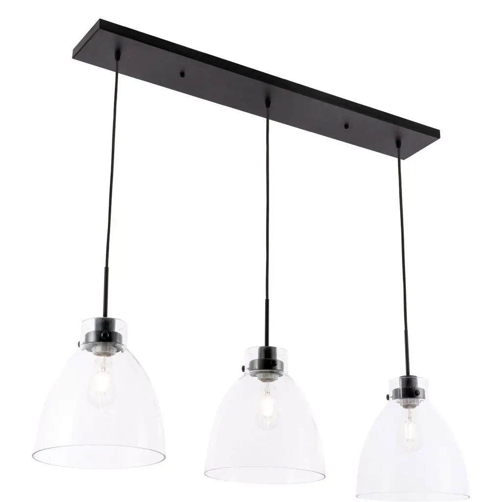 The Genesee Collection pendant lamp is contemporary and the perfect lighting fixture in any home. Its urban-style design will create a contemporary aesthetic and the light can illuminate any room in your home, whether its your dining room, living room, or entry way. The three lights hang suspended from a canopy, ensuring that no corner will be left in shadow. Available in a black finish with a round hemispherical shade, brighten your home with light and contemporary style (light bulbs not included).
