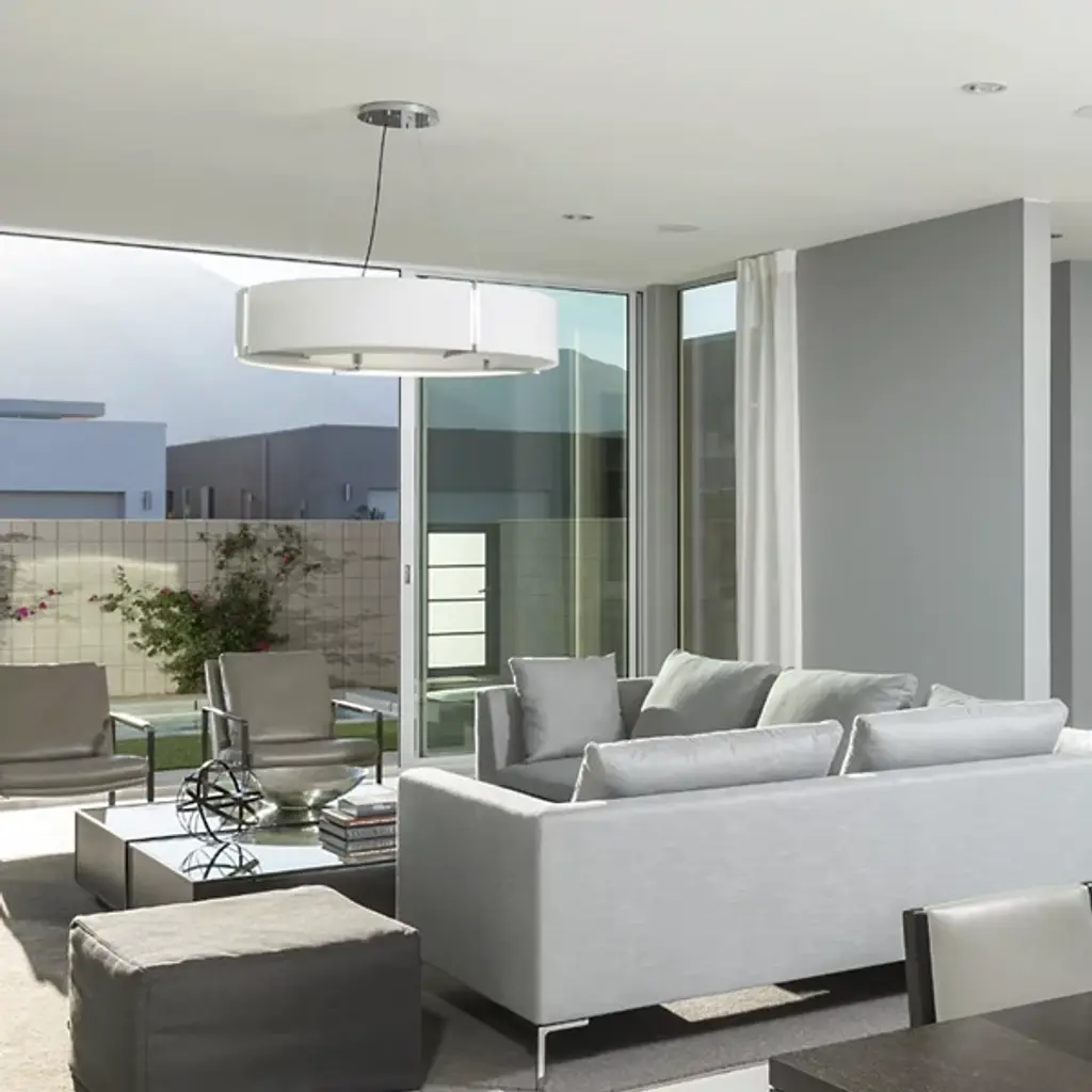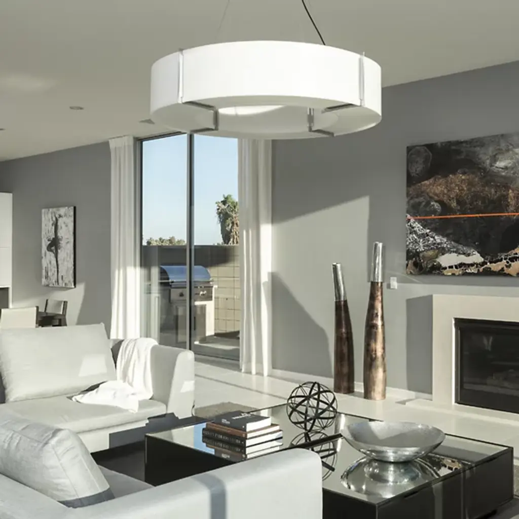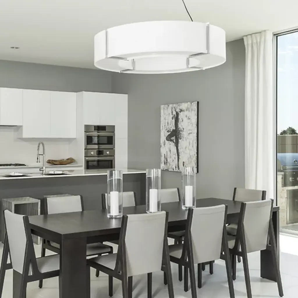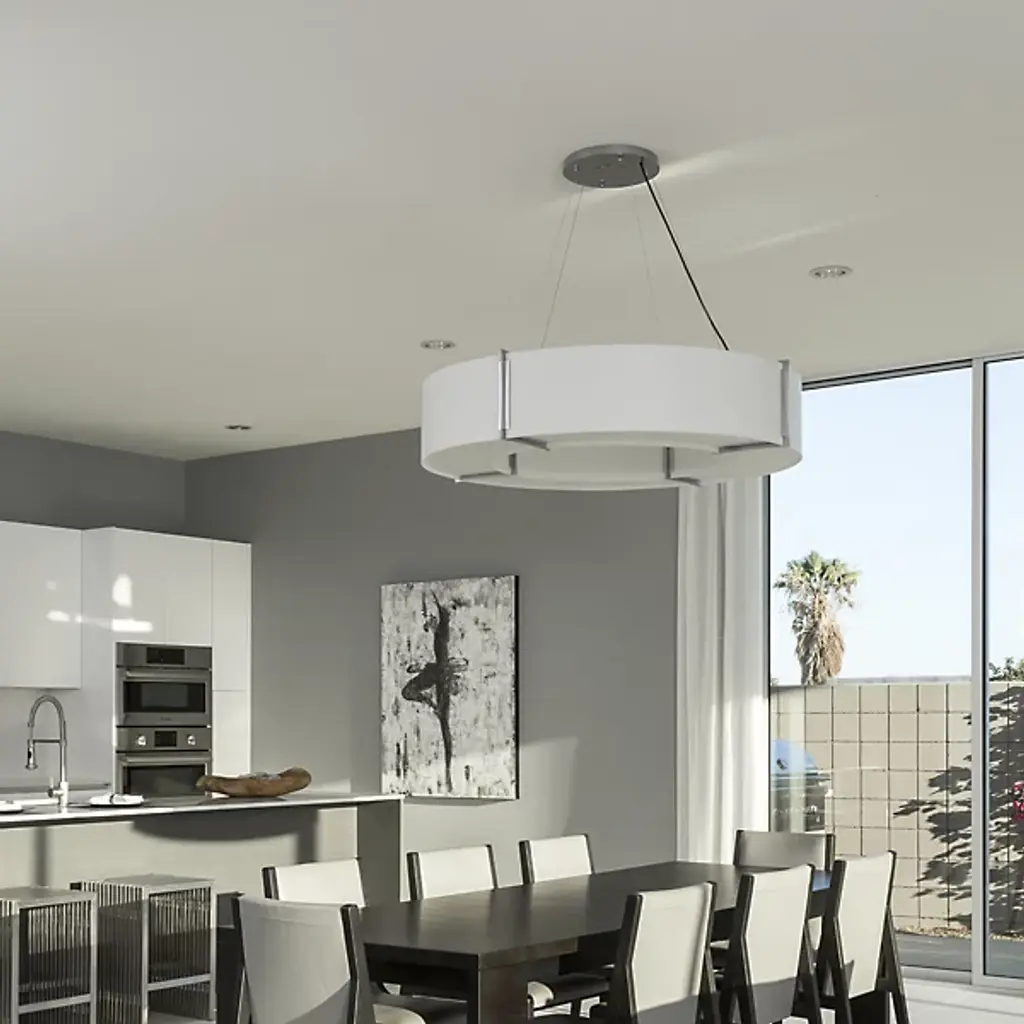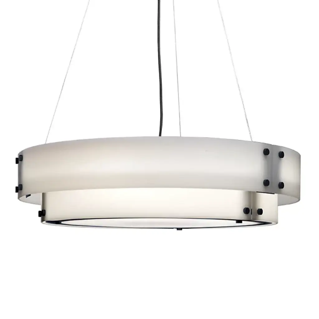 The Ultralights Genesis Drum Pendant features an acrylic diffuser that delicately illuminates the space with a touch of contemporary aesthetic. Metal hardware completes the piece, in the finish of your choice. The metal accents give the piece some contrast against the acrylic drum shape.