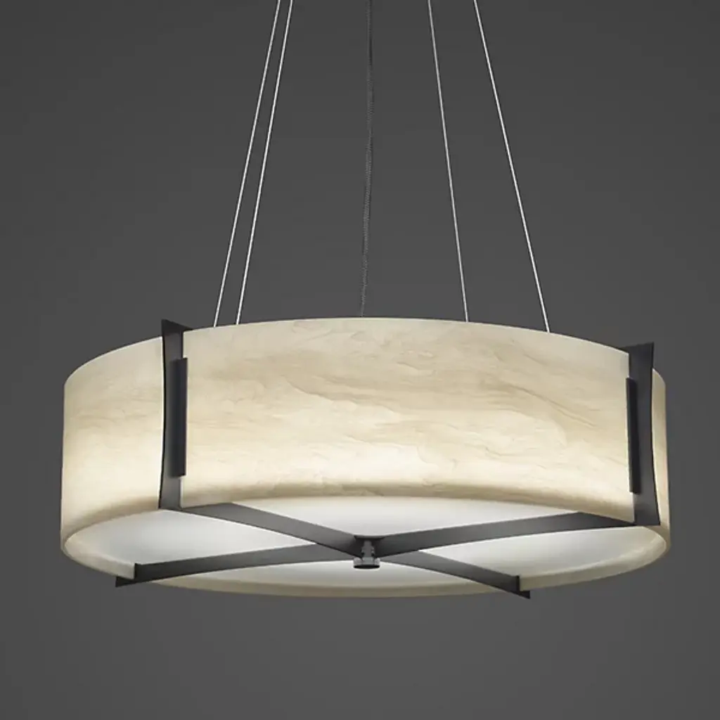 Add a grand, welcoming piece to your home with the Genesis Pendant from Ultralights. An oversized, yet no less magnificent pendant, this piece shapes the atmosphere of the space with a soft and soothing glow. The rounded shade contains a wide breadth as it commands the space. A set of thin cables upholds the piece as a thin metal framework extends from the center and gently grasps the sides. An opal acrylic diffuser set in the underside emanates out the layer of light in a pleasing and easy manner, creating tasteful ambiance.