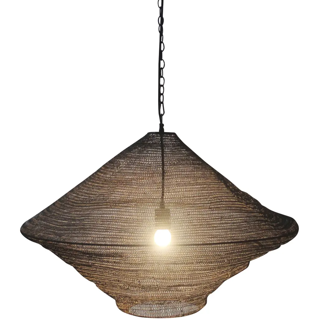 The Genesta pendant blends classic design with contemporary techniques, including a heavily distressed finish, that makes it an industrial yet transitional pendant style. The paper shade adds a rustic touch while allowing the bright glow of the single bulb to shine through. The pendant's 72-inch chain allows for convenient installation at any height.