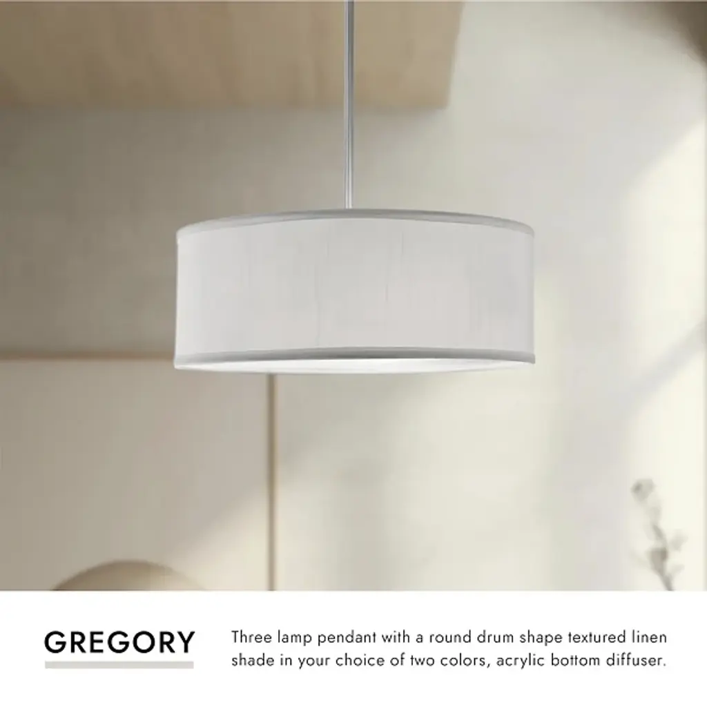 Steady, quiet and strong, like a best friend. The Geogory Drum Pendant by Kuzco Lighting is an inviting and friendly yet understated ceiling lighting companion, sure to work wonders for your surrounding style. The Textured Fabric shade is elegantly crafted into a stocky cylindrical shape, providing a low key border for the downward facing Acrylic diffuser. With a stocky Metal stem finished in Brushed Nickel, this piece combines the low key and the lustrous in a completely contemporary union.
