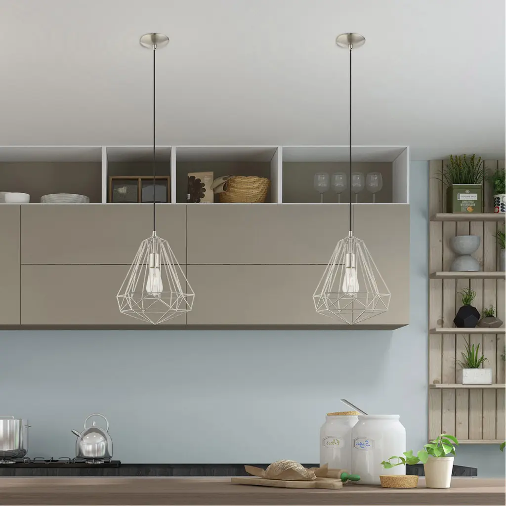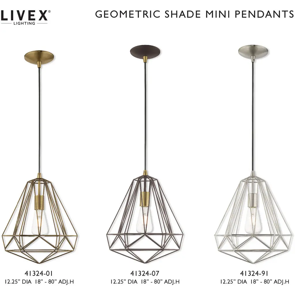 Geometric 1 Light 12 Inch Brushed Nickel Mini Pendant Ceiling Light