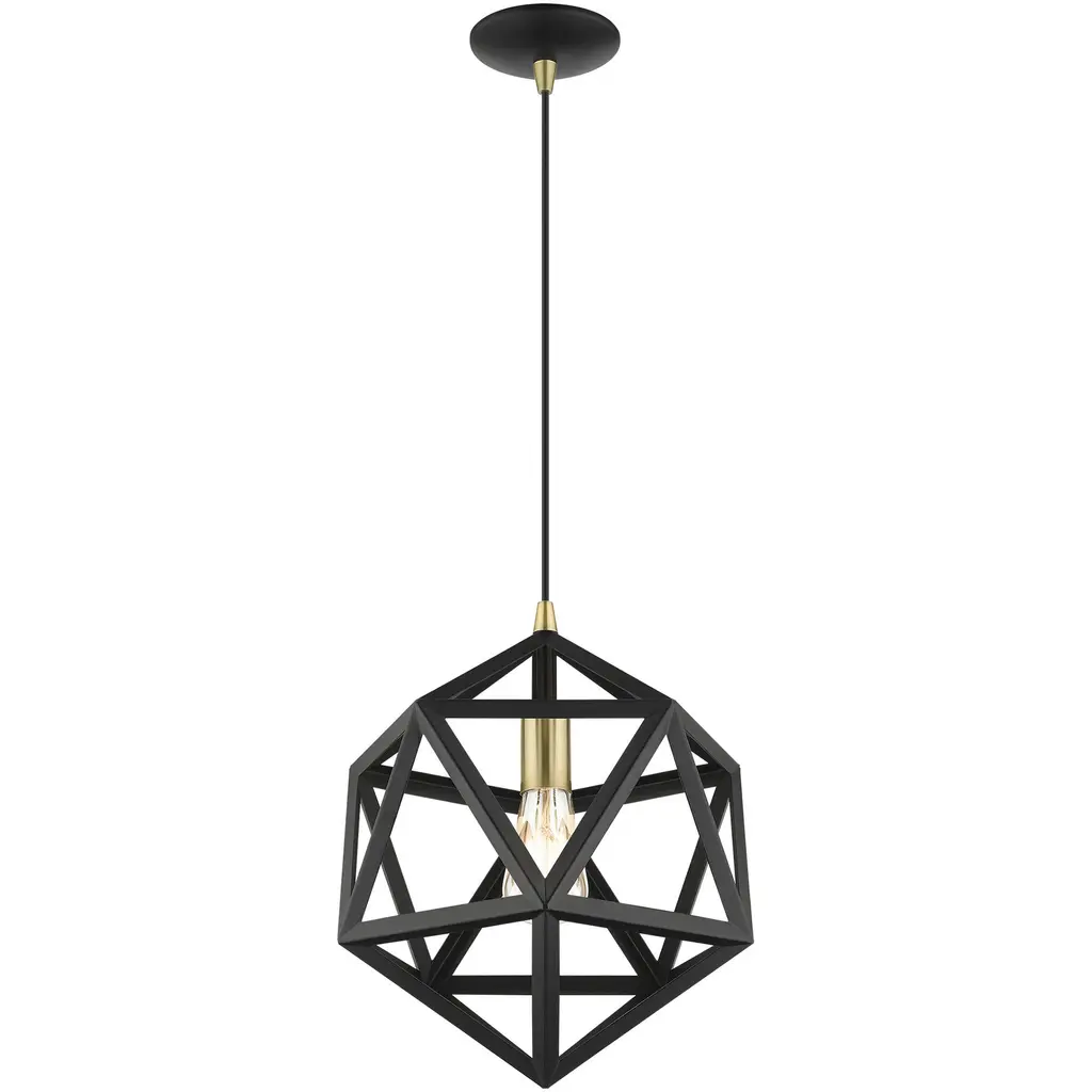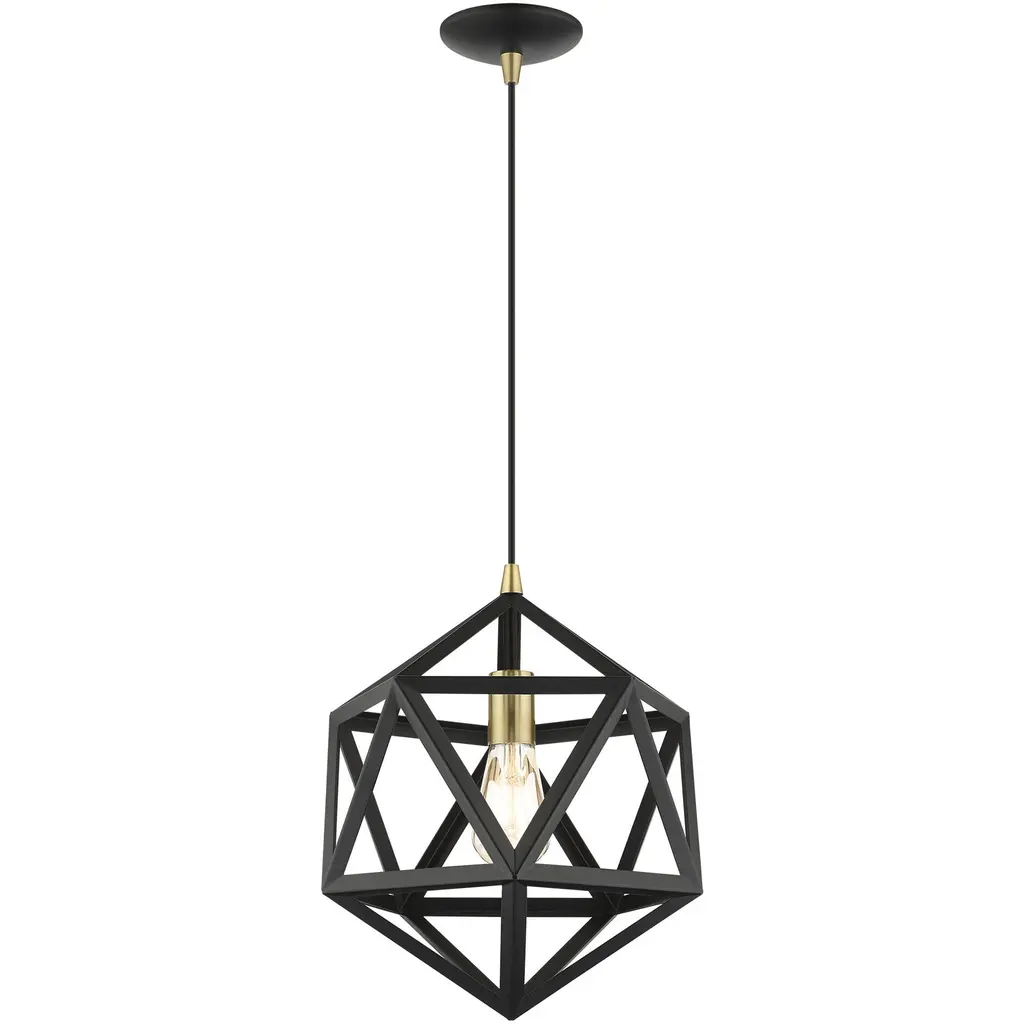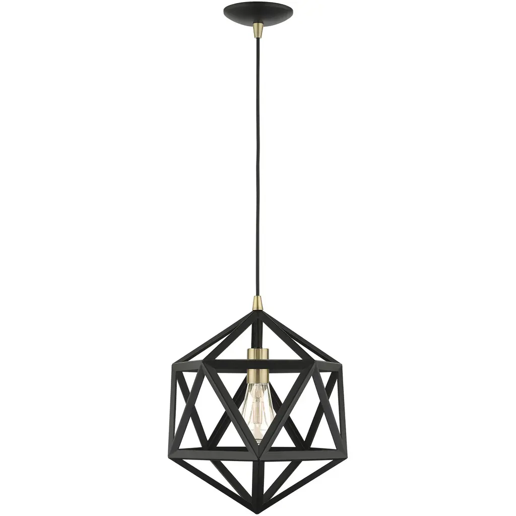 Geometric 1 Light 13 Inch Textured Black Pendant Ceiling Light