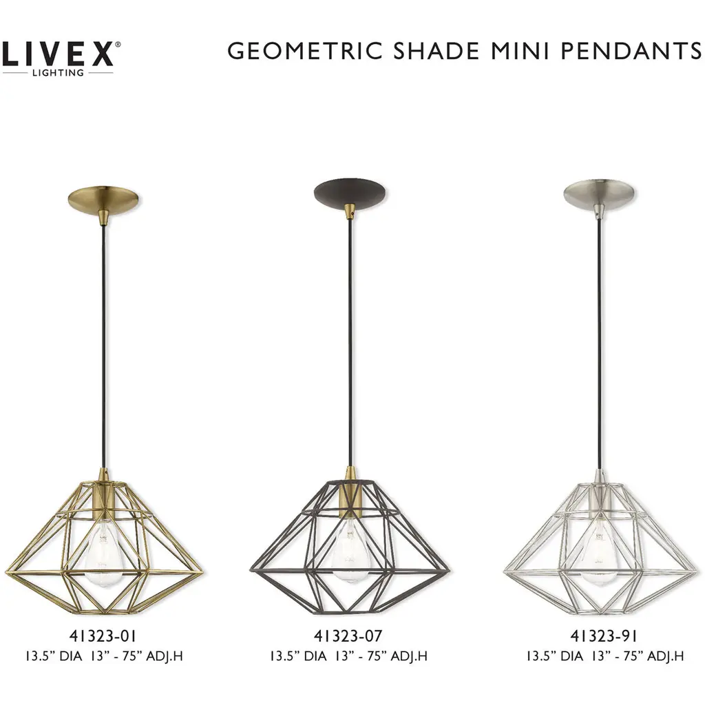 Geometric 1 Light 14 Inch Bronze Mini Pendant Ceiling Light
