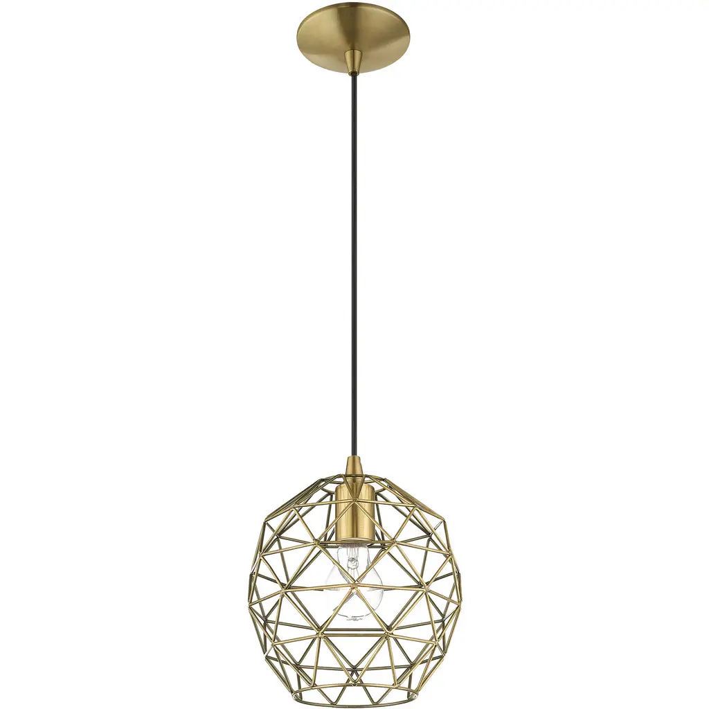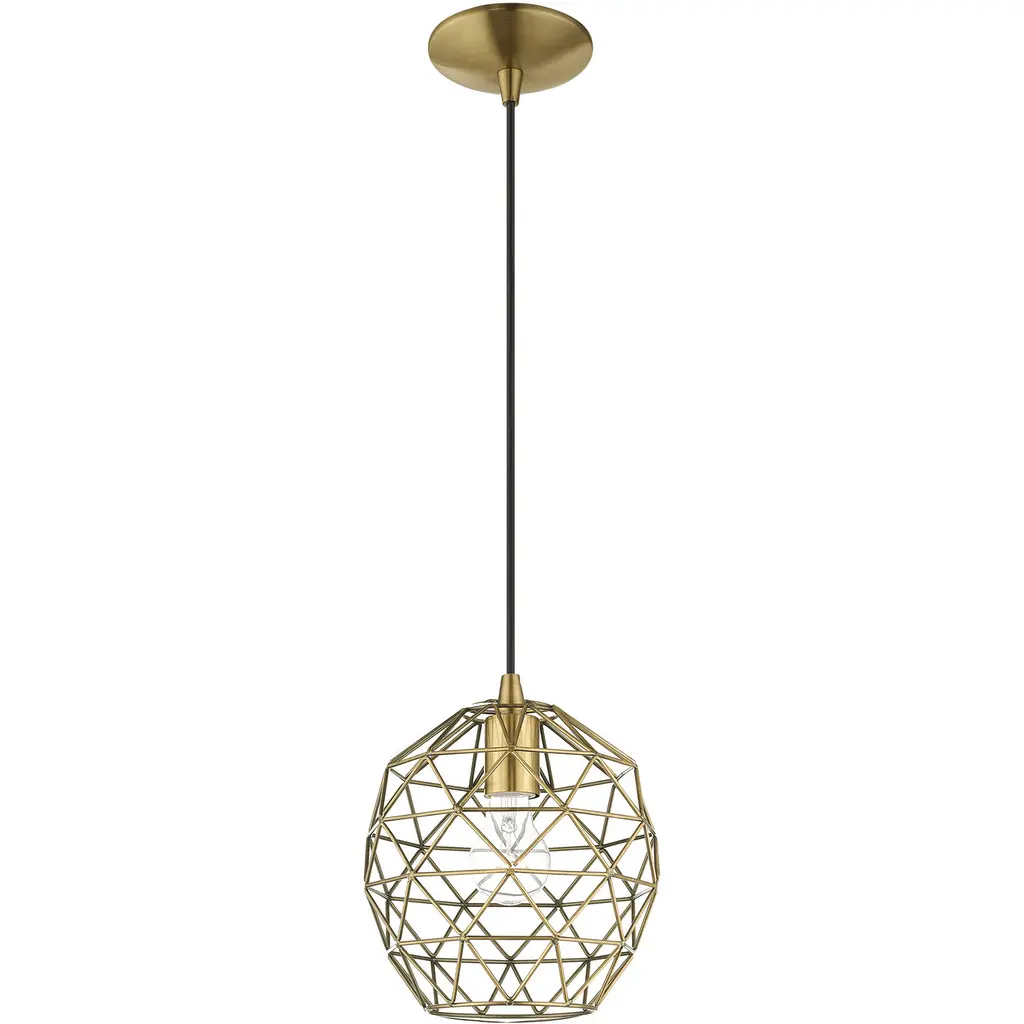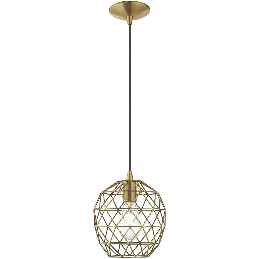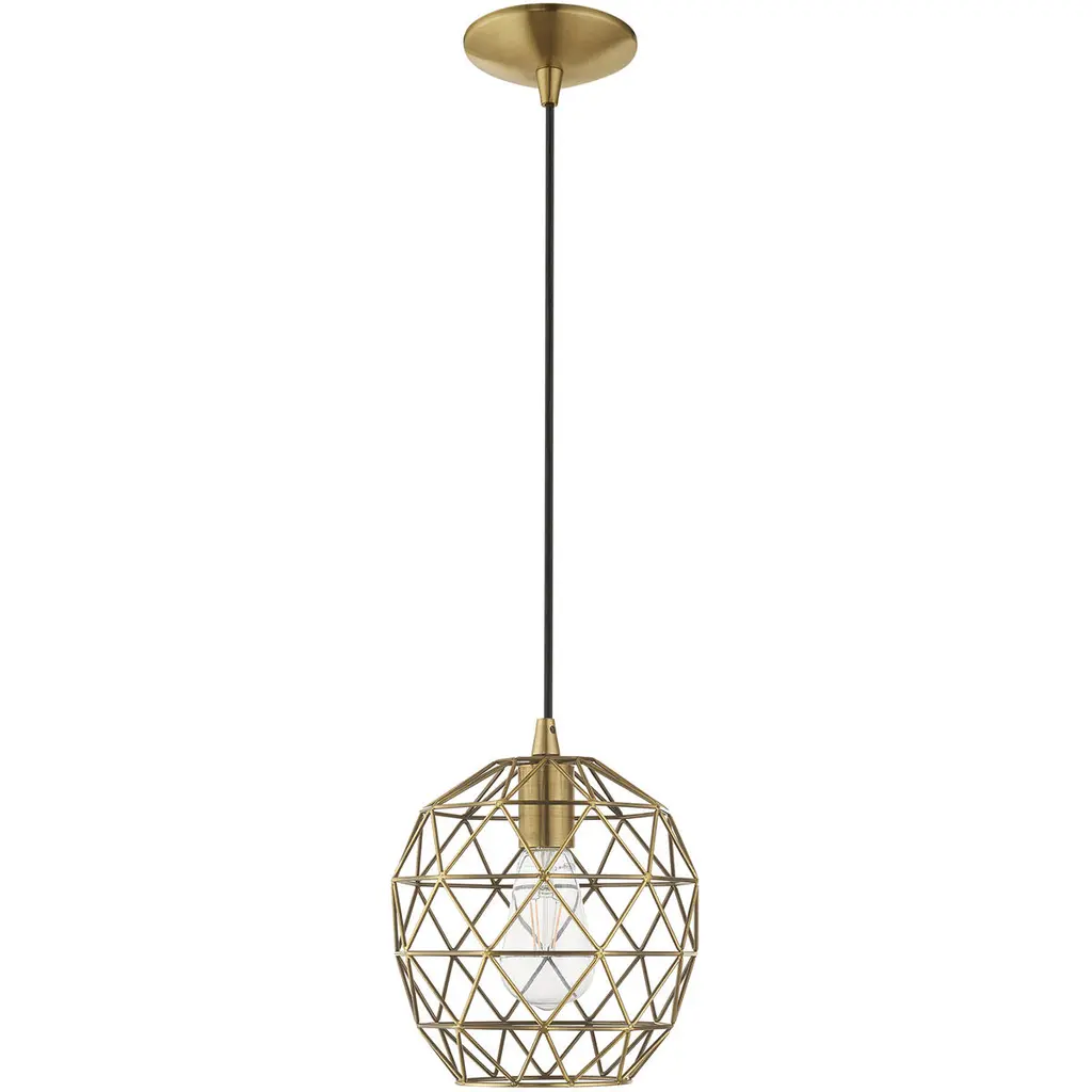 Geometric 1 Light 8 Inch Antique Brass Mini Pendant Ceiling Light