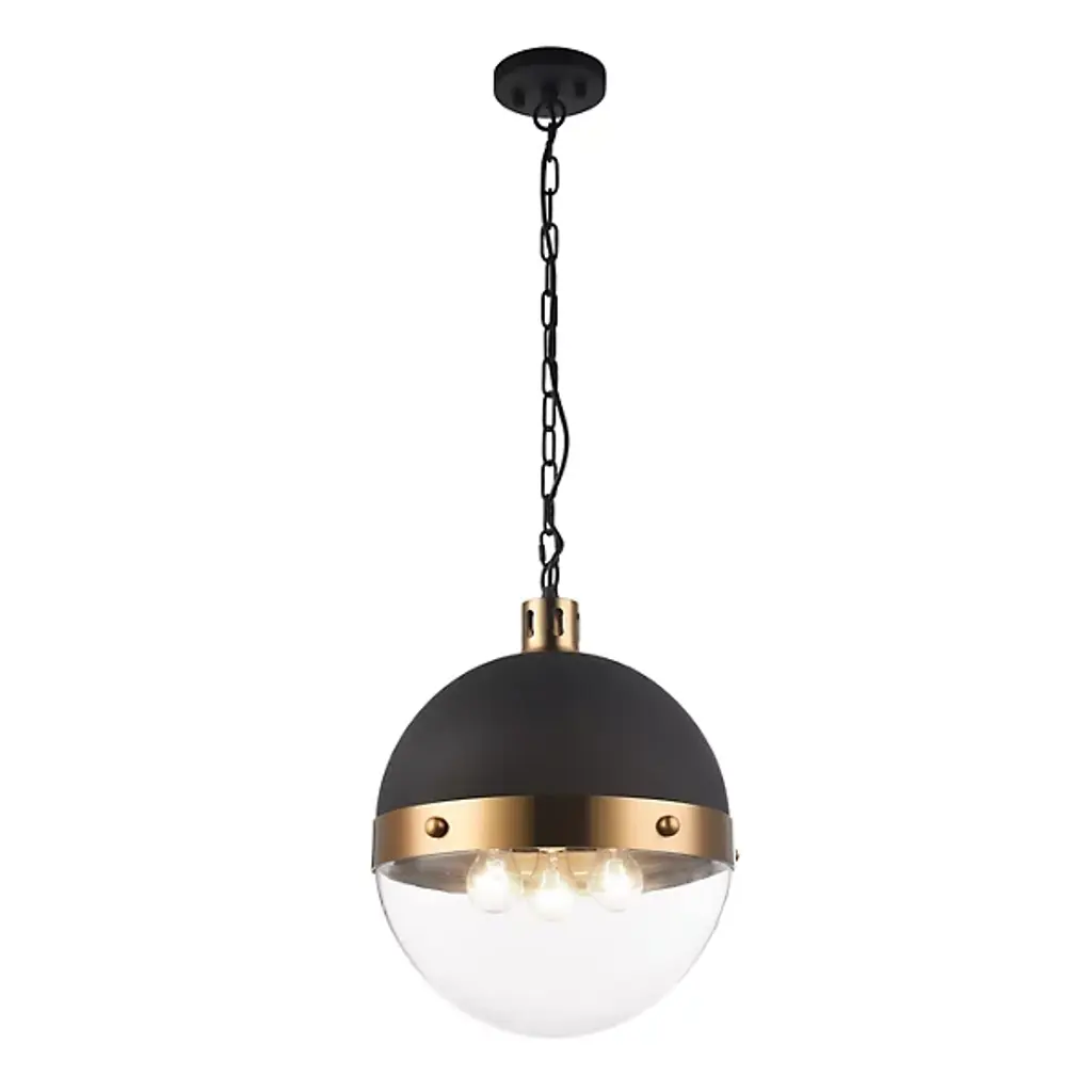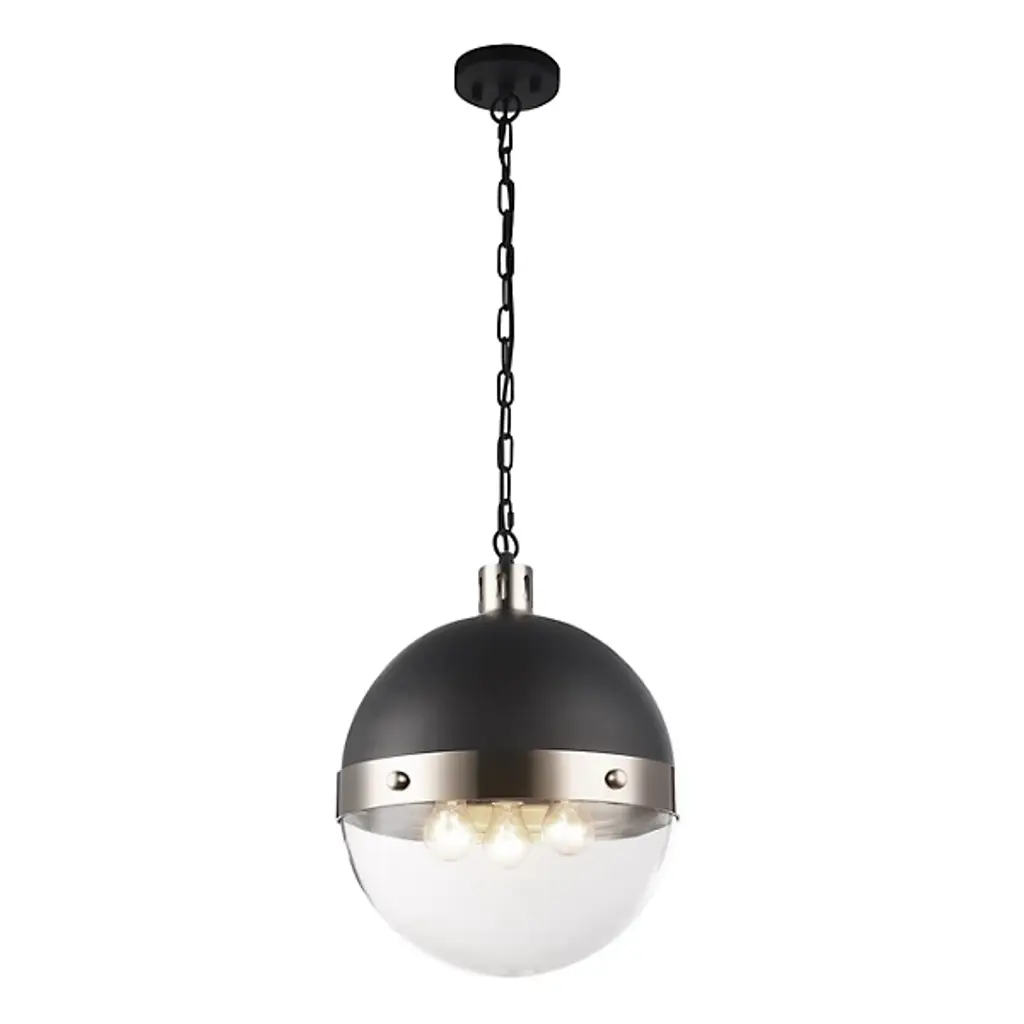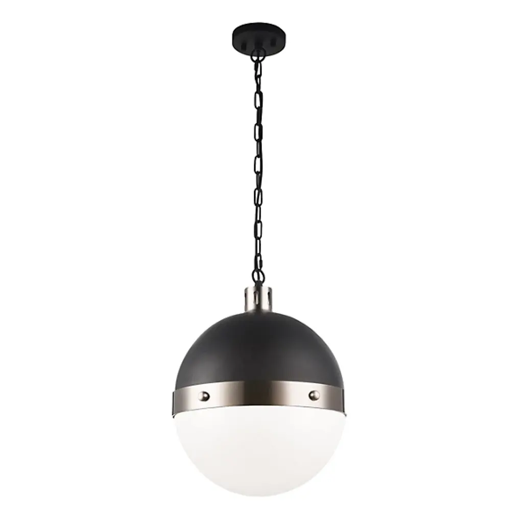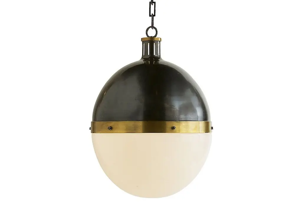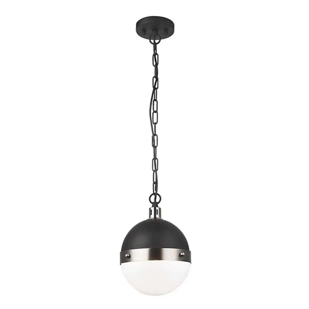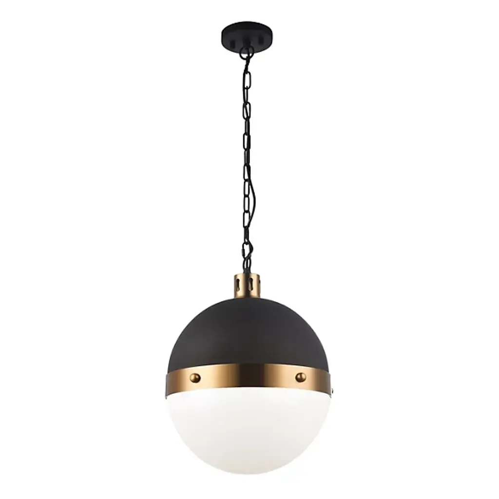The Georgetta Pendant by Alder & Ore is a bold blend of materials and finishes, lending a contemporary touch to the spaces it brightens. With a globe-shaped silhouette, this pendant is simply suspended by a linked chain and dressed up with a metal band that has grommet detailing along its center. Above this band, a metal dome complements the smooth glass shade that completes the spherical form of this pendant, adding a dynamic touch to spaces as it diffuses a lovely layer of light.