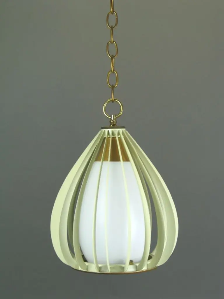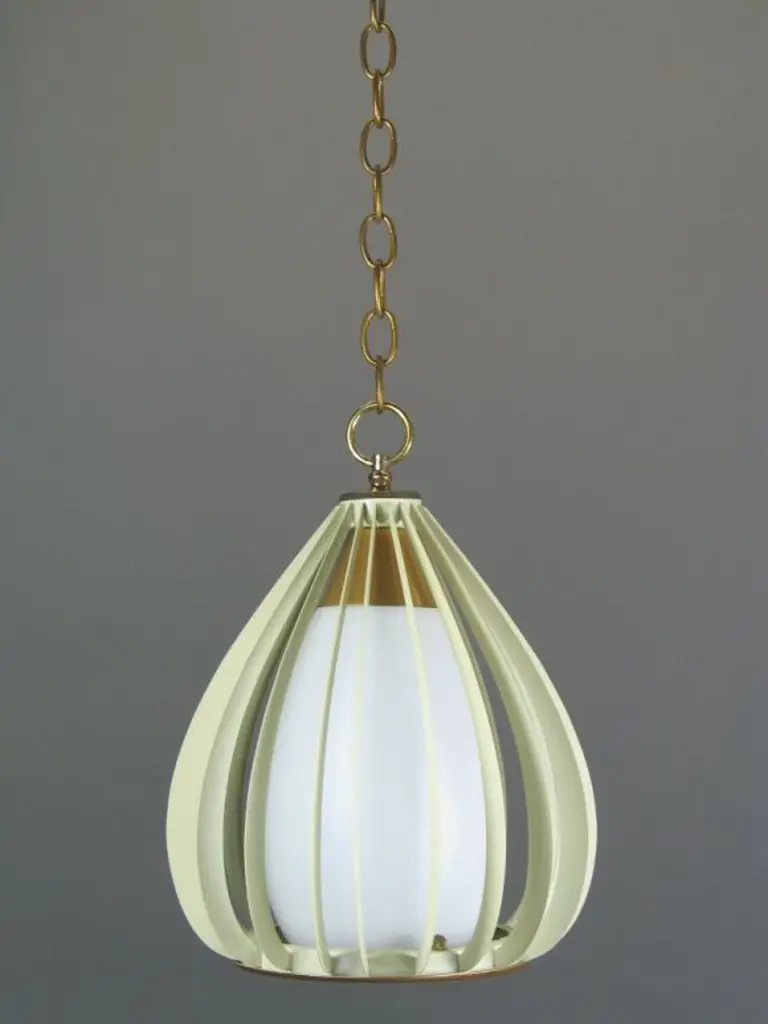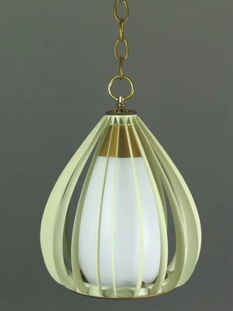 German Ribbed Metal And Frosted Glass Pendant 2 Available