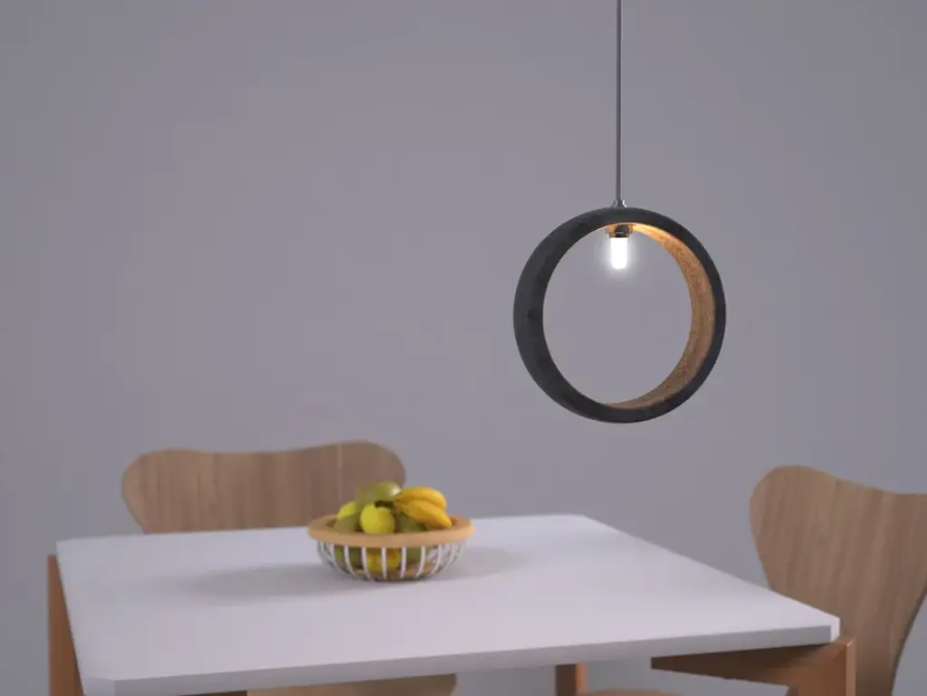 Ghetto-C pendant lamp is designed by Urbi et Orbi Studio in 2016, part of the FUNKY collection.Its shape is carved from the heart of a sphere, maintaining a uniform thickness of 1 cm. Inspired by the 1970s music and culture, reminding us that when talking about any ghetto, every boundary is defined and shaped clearly by people for people. Ghetto-C is a decorative lamp that adds to the aesthetic of a space, either as a standalone or in combination with multiple pieces.The series is complemented by a wall lamp and a table lamp.This concrete suspension lamp is produced through our company's Zero Waste Project developed over the past 3 years, with a recycling rate of 20%.It is available in 2 shades of grey, in various colors ranging from warm to cool tones such as beige, terracotta, olive green, dusty blue, etc.Its organic shape is made of cast concrete.CE - IP20