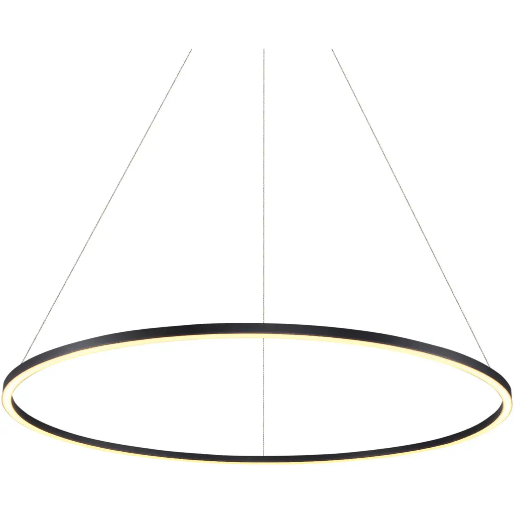 The Ghost LED Pendant by Boyd Lighting is a beautiful design from artist and industrial designer Doyle Crosby that transforms when a transparent piece of acrylic turns into an opaque display when illuminated. Handmade in Colorado, the open circular frame of this piece is carefully welded and holds a clear acrylic diffuser that gives the halo silhouette of this pendant a weightless and airy look when off and a warm, welcoming feel when providing both upward and downward cast light. Effortlessly suspended in a horizontal position, this pendant crowns spaces with an artful, luminous touch.