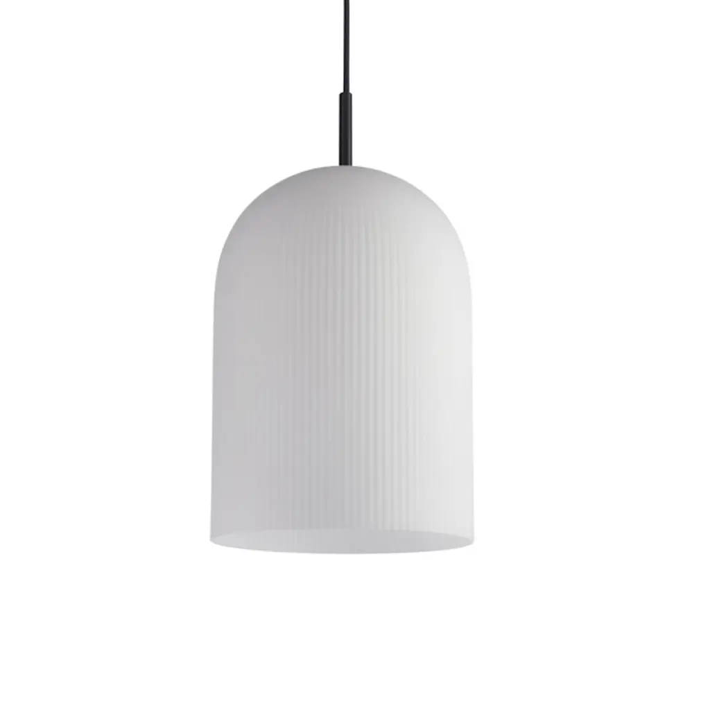 An inviting presence with or without the lights on. The Ghost Pendant from Woud is a minimal design calling to mind the paranormal with a seemingly floating, cloth-like glass display. Studio Kowalewski creates meaningful pieces for everyday life using an approach centered on craftsmanship, aesthetic, and tech knowledge. The pendant enters the room with a slender suspension that suggests a floating visual. The opal glass shade presents itself in a fluid shape like playful ghost imagery. It surprises up close with vertical grooves that disappear towards the top. This shade scatters a soft ambiance and funnels a clean down glow.
