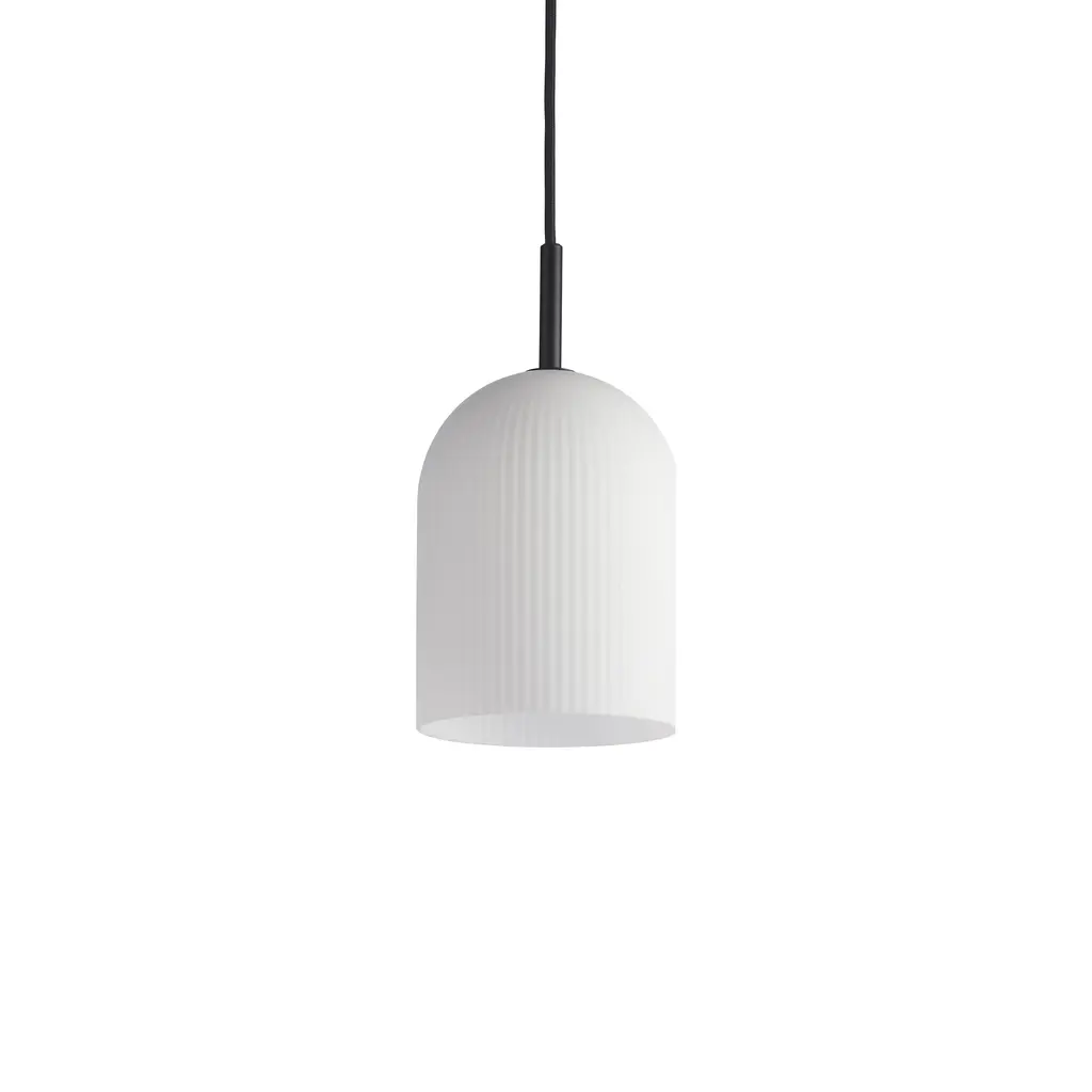 With its sculptural and minimalistic refined silhouette, the Ghost pendant has a modern purity. Made of translucent opal glass, the shade gives an illusion of a white cloth thrown over the light source. Resembling the appearance of a friendly ghost in the air. A figure that is enhanced by the subtle vertical groove pattern fading out gradually upwards. Casting a soft, diffused light, the Ghost pendant will fill the room with a cozy vibe. Features