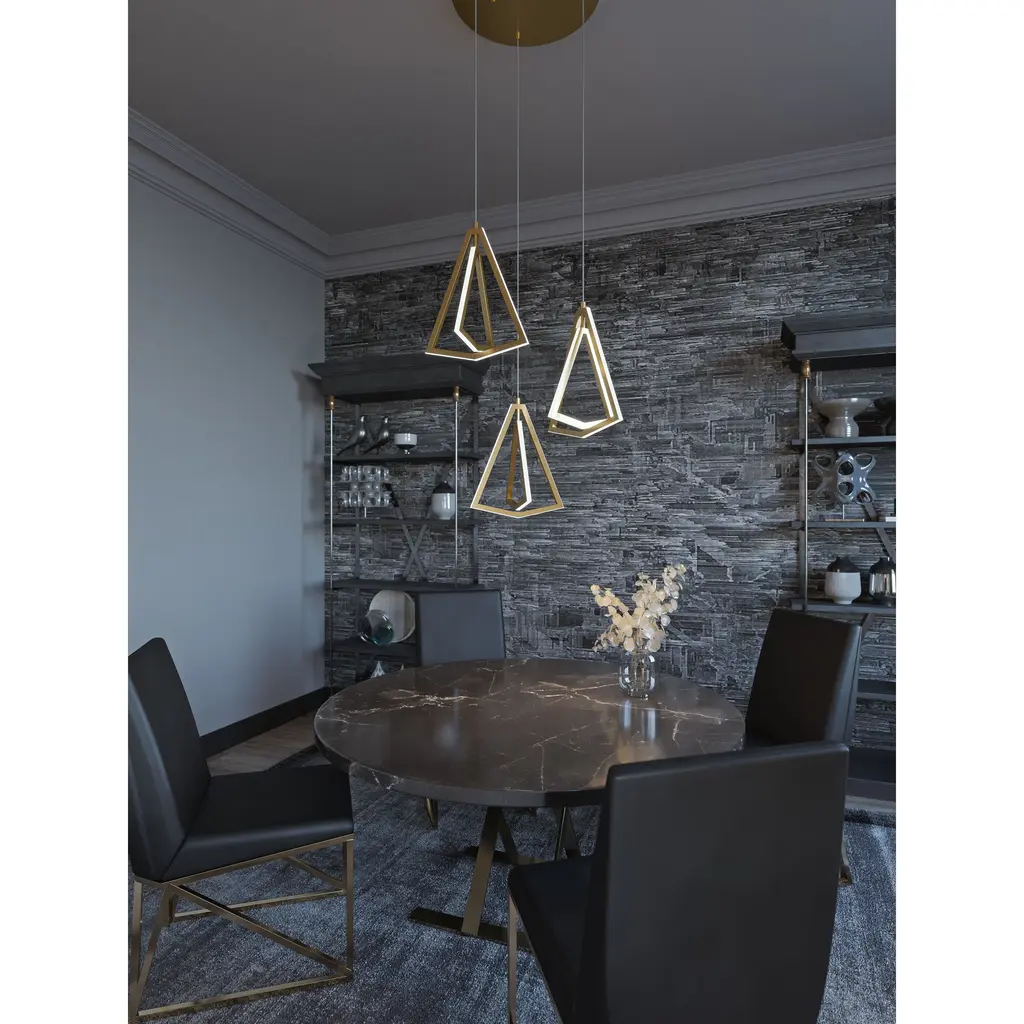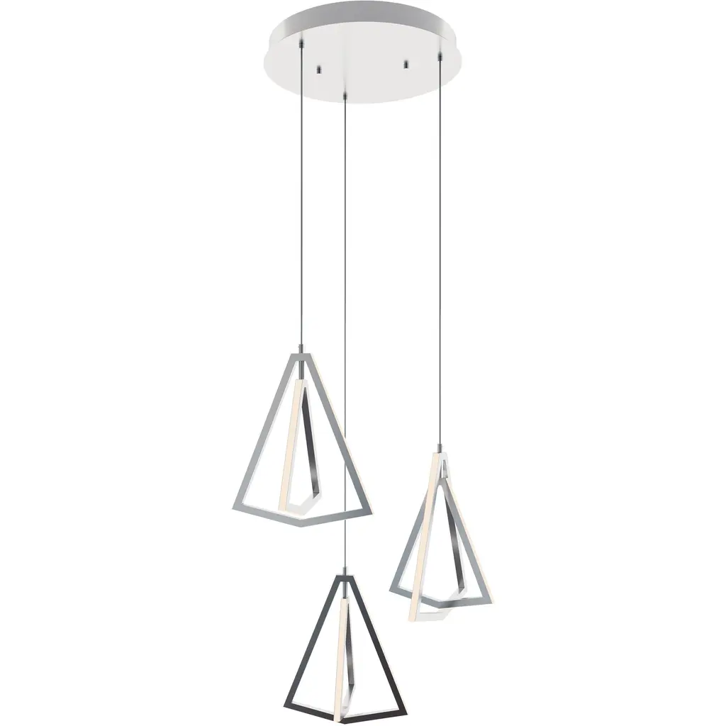 A striking avant-garde look for the modern home, the Gianna Three Pendant by AFX is made with a trio of acrylic and aluminum pyramids that add personality to a room. Each light fixture features integrated LED that emits light outward and targets it down below, where it's needed most. It's a bright and bold design choice for living rooms, dining rooms, bath areas, and more.