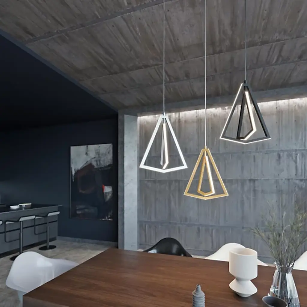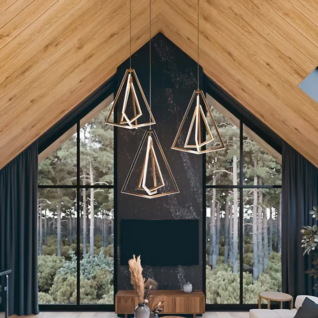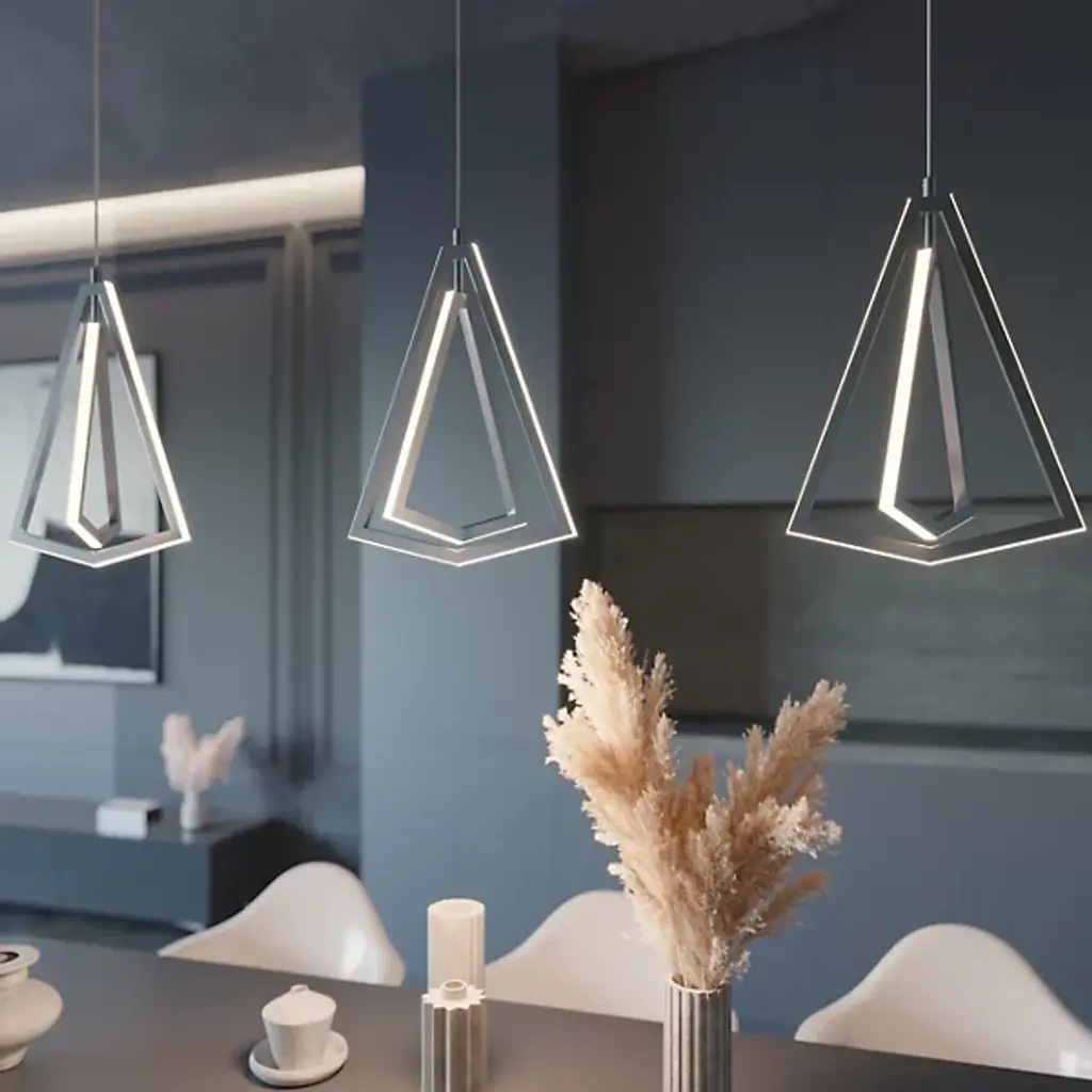 Uniquely geometric lighting for modern interiors. The Gianna LED Pendant by AFX Lighting has an angular, multi-layered design sure to catch the eye in any modern dining room, bedroom or other space. Each element in this pendant light includes a bent Metal channel, which houses a continuous row of LEDs. An Acrylic lens along the entire perimeter keeps the LEDs hidden and ensures a vibrant and even wash of light when the pendant is turned on.