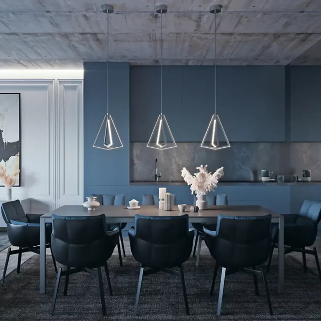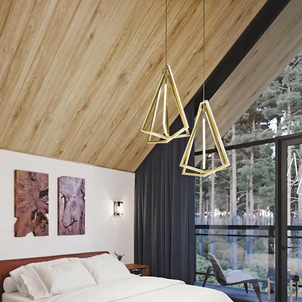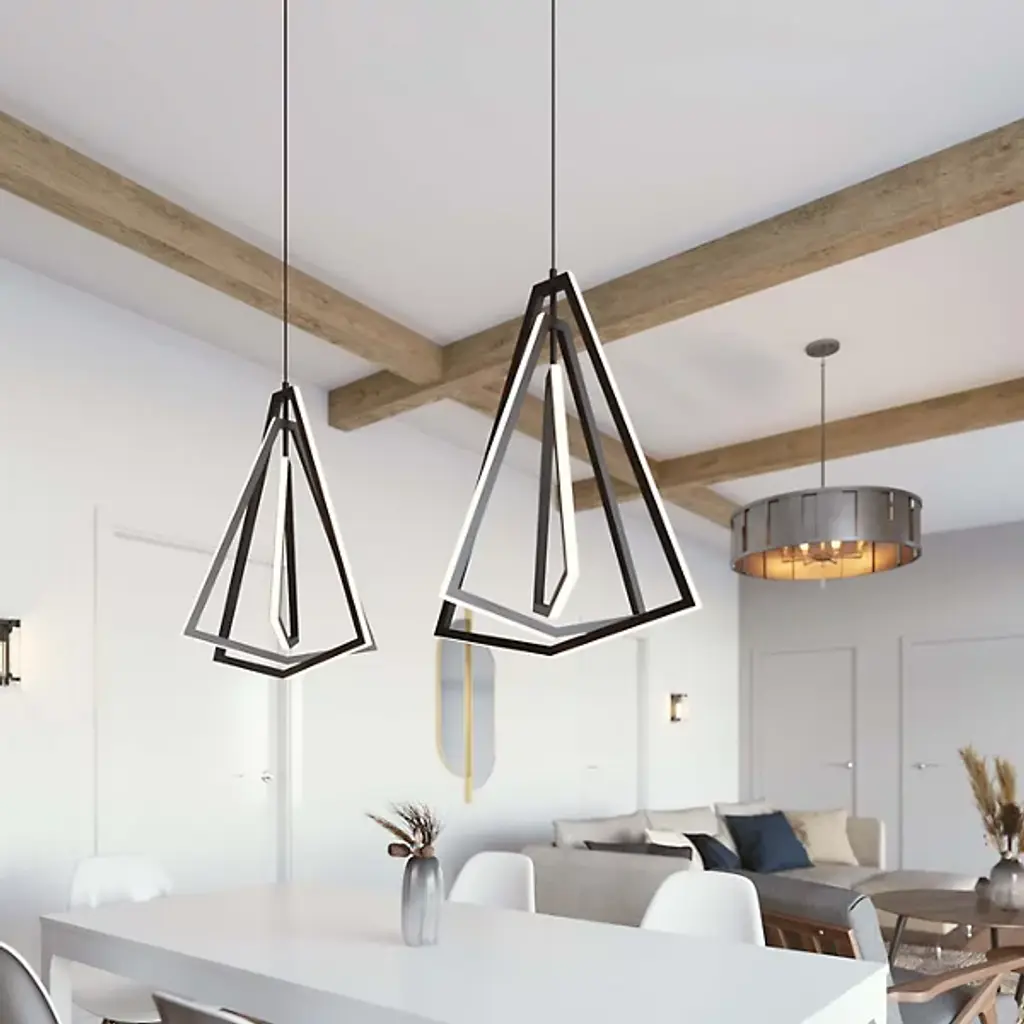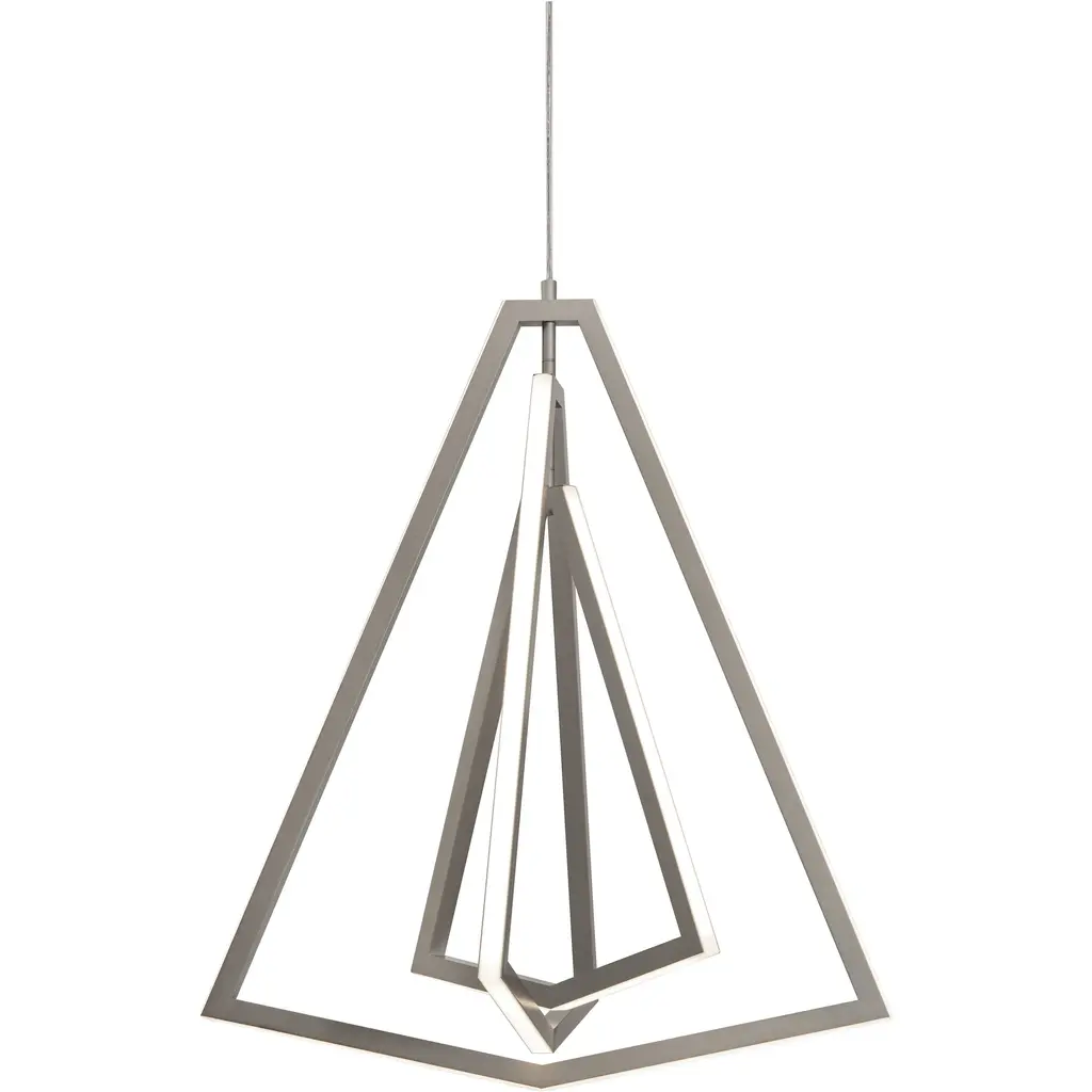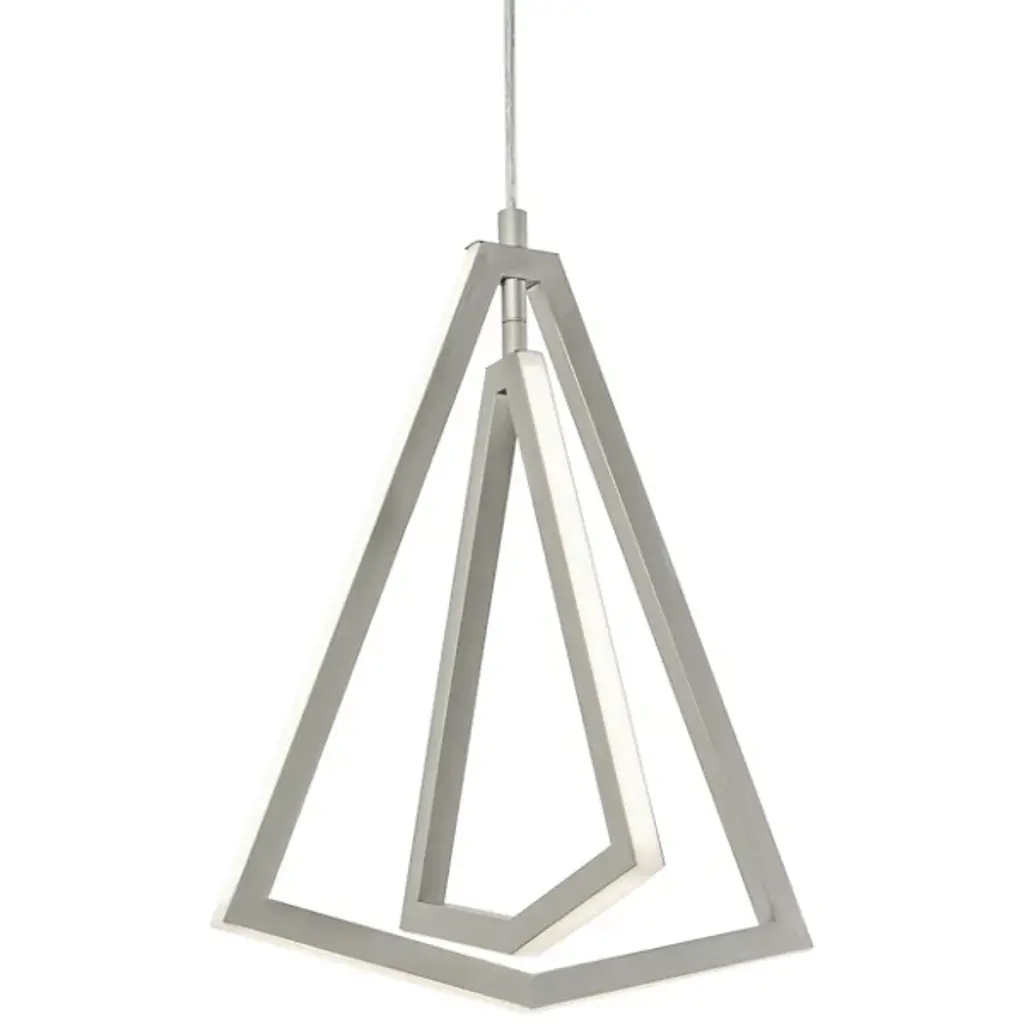 Uniquely geometric lighting for modern interiors. The Gianna LED Pendant by AFX Lighting has an angular, multi-layered design sure to catch the eye in any modern dining room, bedroom or other space. Each element in this pendant light includes a bent Metal channel, which houses a continuous row of LEDs. An Acrylic lens along the entire perimeter keeps the LEDs hidden and ensures a vibrant and even wash of light when the pendant is turned on.