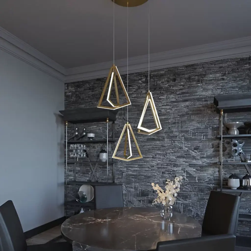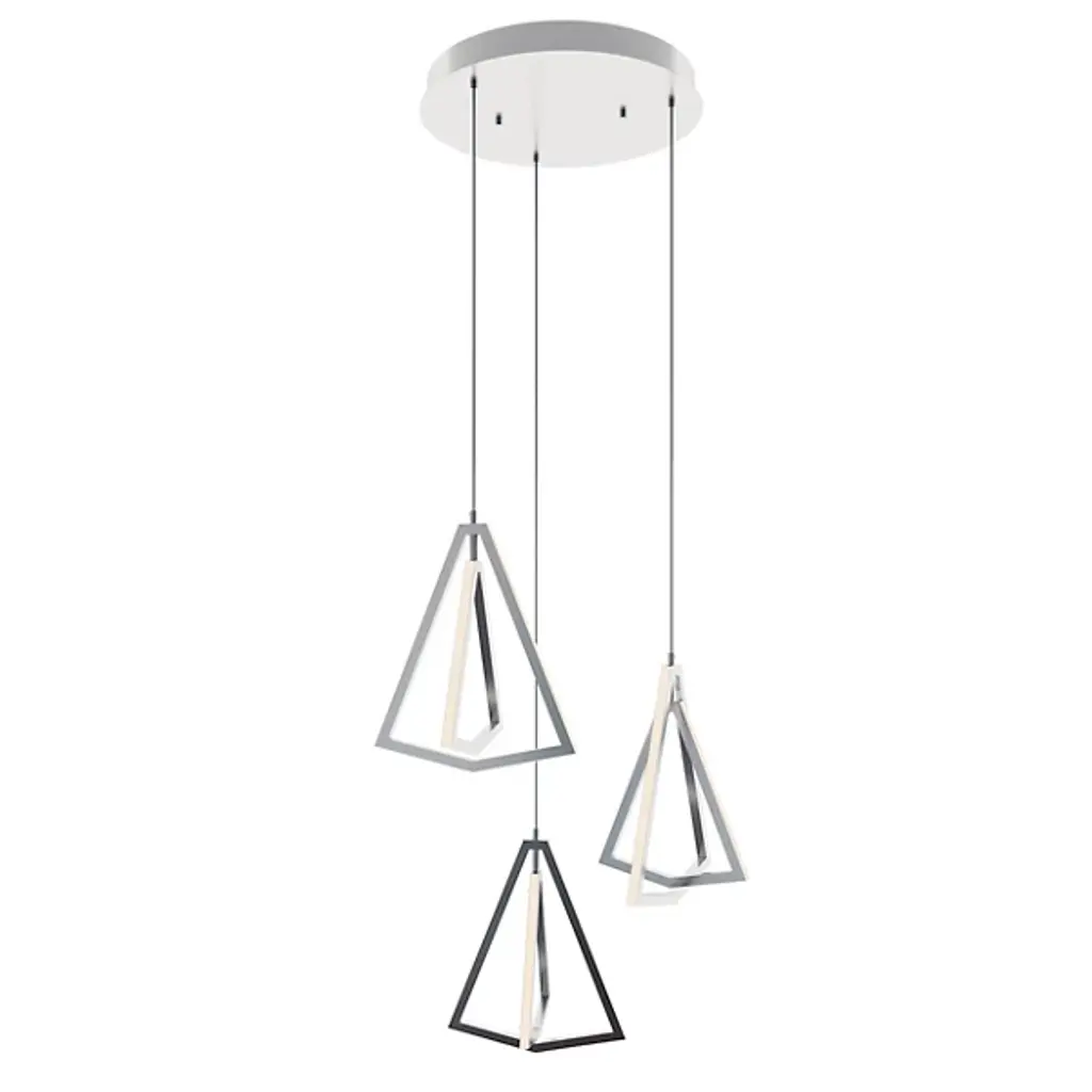 The Gianna Multi-Light LED Pendant by AFX Lighting is as avant-garde as a pendant light could be. Multiple acrylic and aluminum pyramids hang from a rounded base in staggered lengths, adding visual character and depth to its surrounding space. Each pyramid form is integrated with an LED light that casts vivid illumination in all directions, making this pendant perfect to mount above a desk, kitchen table, or island. Its damp rating and dimmer capability also make this pendant chandelier ideal for bathrooms.