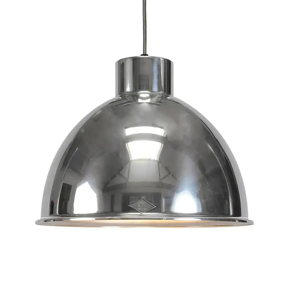 Inspired by traditional factory fittings, the Giant metal pendant shades bring a clean-lined, industrial style. Fitted with a tinned braided cable, the lights can be grouped together for maximum impact. The lights are available with or without a wired glass visor. The wired glass visor can help to prevent glare. Features