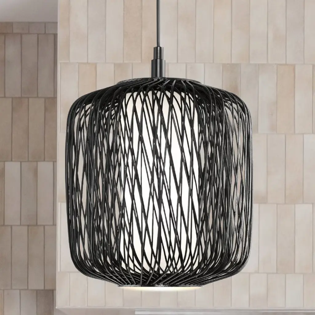 The Giardino Pendant from Servomuto is made in Italy, celebrating the eclectic style of the 1950s, a time when design was truly flourishing. The Giardino Pendant is inspired by the Far East and the culture of outdoor living, which is reflected in the materials used in its construction. Rattan adds a natural and organic element to the design, while Jacquard fabrics, which are typically associated with more formal and luxurious textiles, are used to create a subtle yet intricate pattern on the pendant's surface. The contrasting finishes on the white parchment diffuser further add to the visual appeal of this piece.