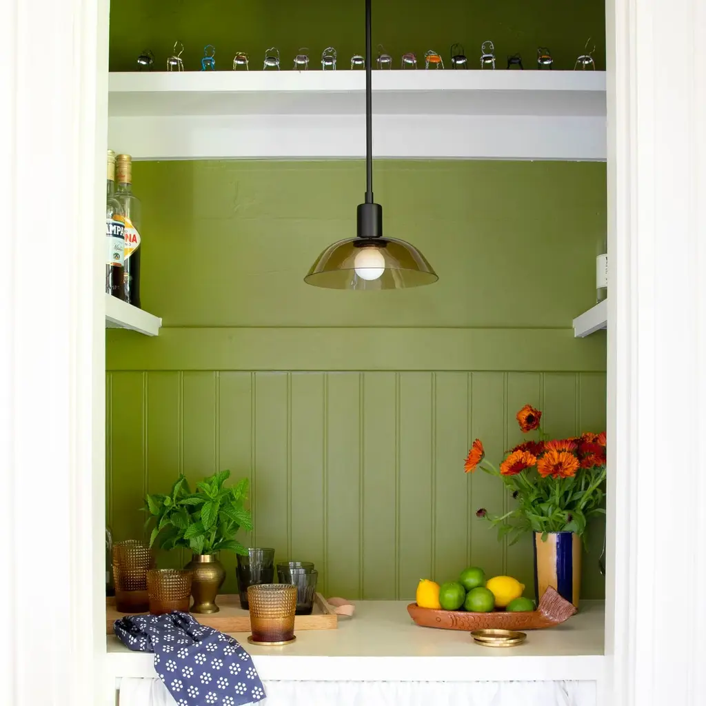 A fresh take on a mid-century style, the Gillespie Pendant delivers a modern yet opulent feel while casting a radiant glow. This pendant light is a superb choice as a stand-alone statement fixture in a small dining nook, or install multiple fixtures close together to establish an inviting warmth over a bar or dining table. This unique light source incorporates a custom 8” clear or bronze glass shade with a ⅜” pendant rod and is available in eight different length options. A Schoolhouse Original.