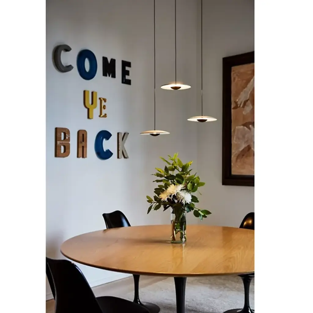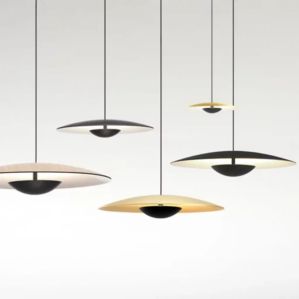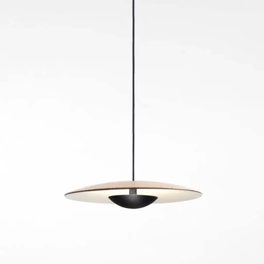 Decorate your space with a clean and warm layer of light. The Ginger 20 LED Mini Pendant from Marset was designed by Joan Gaspar in 2014 and further evolved over time. Available now with a smooth metal construction, it consists of a wide, gracefully curved shade that rests on the end of a slim cord. A half-dome diffuser lies directly beneath the shade, containing the integrated LED that emits a bright and focused glow. The shade cascades it across the room, creating a warm, glare-free layer of light.