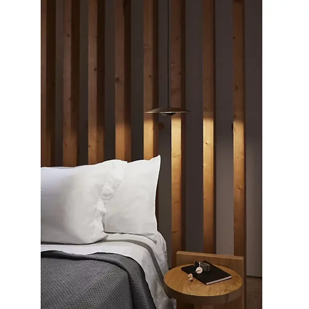 Decorate your space with a clean and warm layer of light. The Ginger 20 LED Mini Pendant from Marset was designed by Joan Gaspar in 2014 and further evolved over time. Available now with a smooth metal construction, it consists of a wide, gracefully curved shade that rests on the end of a slim cord. A half-dome diffuser lies directly beneath the shade, containing the integrated LED that emits a bright and focused glow. The shade cascades it across the room, creating a warm, glare-free layer of light.