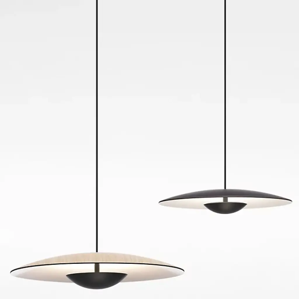 Inspired by the cymbals of famous drummer, Ginger Baker, the Marset Ginger LED Pendant is an exceptionally thin and smooth conductor of light. The high pressure shaping of high-quality wood and paper results in an ultra-thin shade with a white interior, brilliantly amplifying the LED light outward. The aluminum structure holds the warm LED module which is outfitted with special optics to open up the light beam. In an effort to dissipate the LED light temperature, designer Joan Gaspar decided to thicken the aluminum instead of carving out grooves in the metal holder.