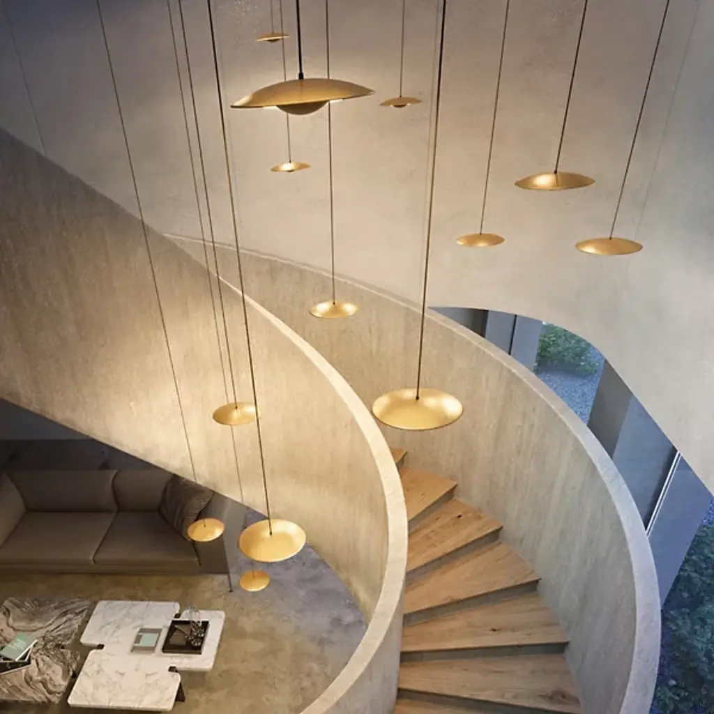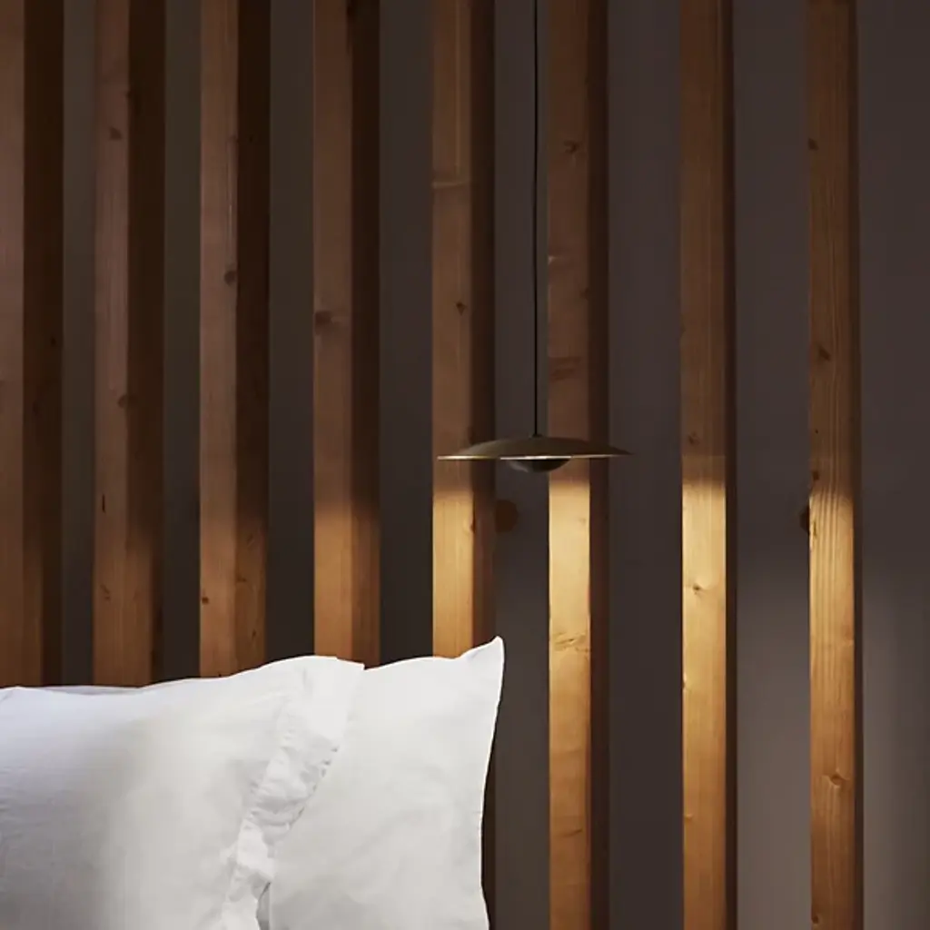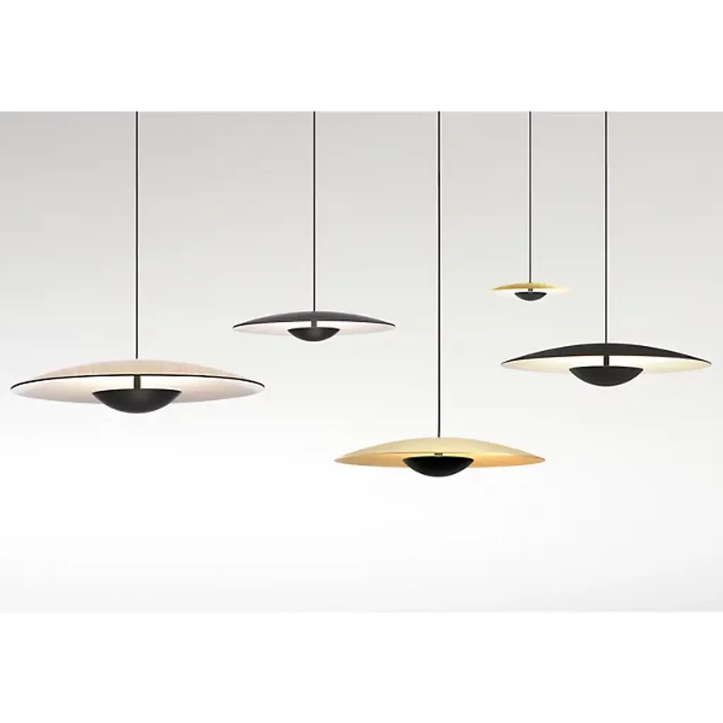 Inspired by the cymbals of famous drummer, Ginger Baker, the Marset Ginger LED Pendant is an exceptionally thin and smooth conductor of light. The high pressure shaping of high-quality wood and paper results in an ultra-thin shade with a white interior, brilliantly amplifying the LED light outward. The aluminum structure holds the warm LED module which is outfitted with special optics to open up the light beam. In an effort to dissipate the LED light temperature, designer Joan Gaspar decided to thicken the aluminum instead of carving out grooves in the metal holder.