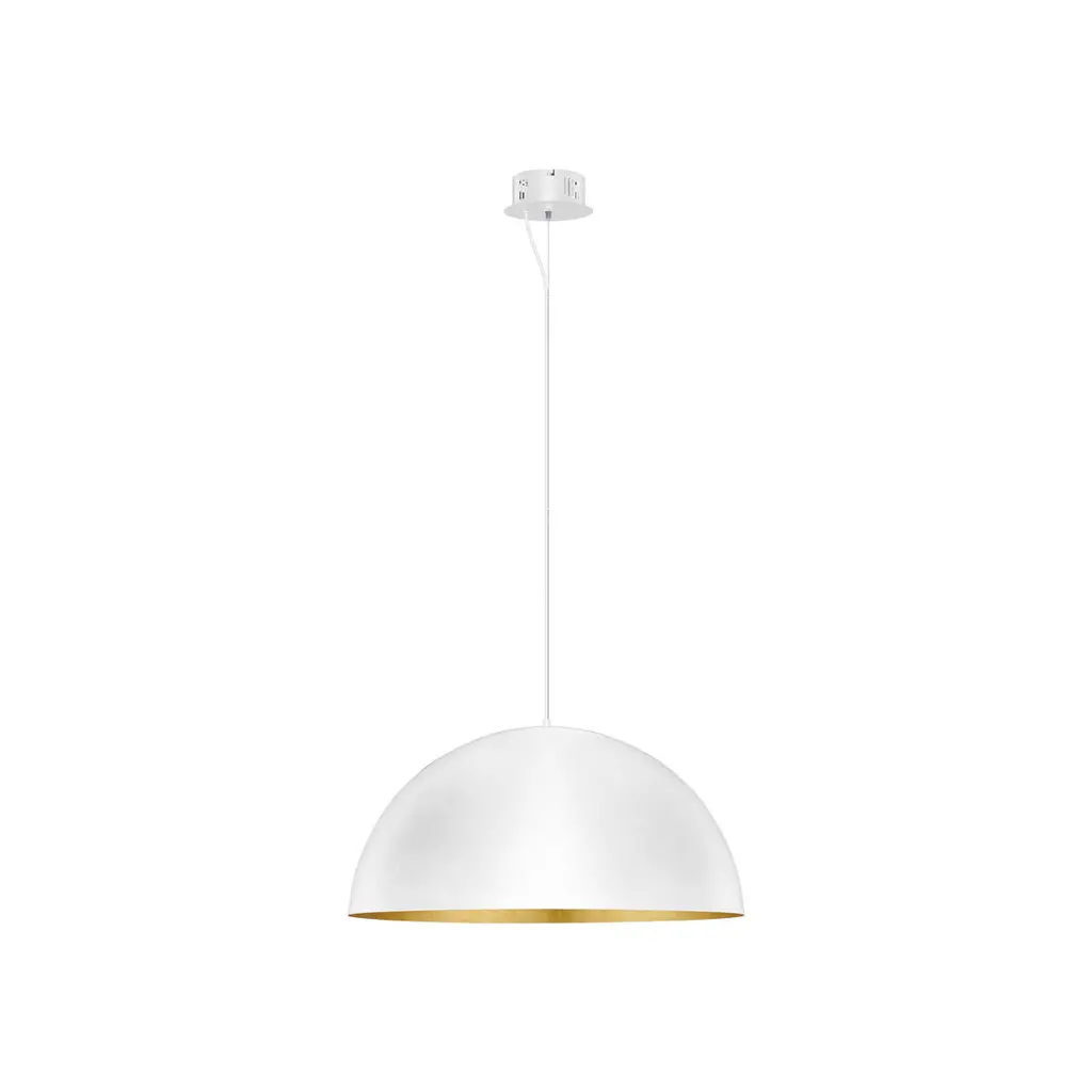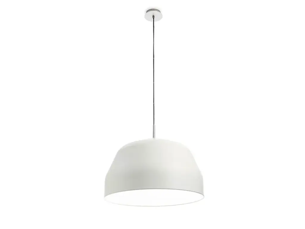Large suspension lamp providing direct light with turned aluminum structure and lamp holder with E27 fitting. The half-sphere shape and the use of different E27 sources guarantee pleasant ambient light effects. Also available in a black-in-gold leaf finish.