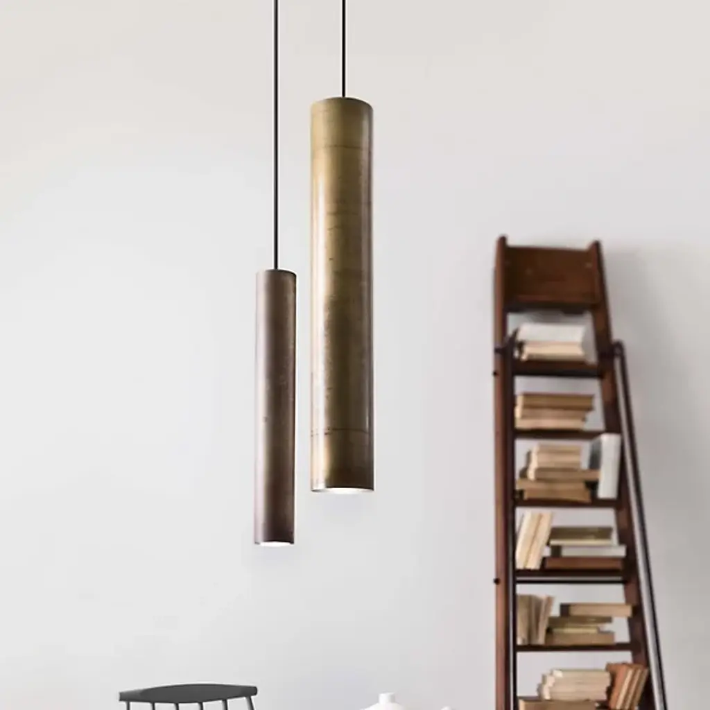 The Girasoli Pendant by Il Fanale has a minimal composition that was inspired by simple, geometric shapes. Suspended from a cylindrical canopy, a smooth, tubular shade conceals a light source, focusing a layer of illumination down onto its surroundings. The clean silhouette of this design allows the metal it is composed of to truly stand out, adding a cool, industrial touch to the streamlined look of this pendant. Perfect alone or paired up to create a more dynamic composition, this design lends a bold, bright touch to rooms.